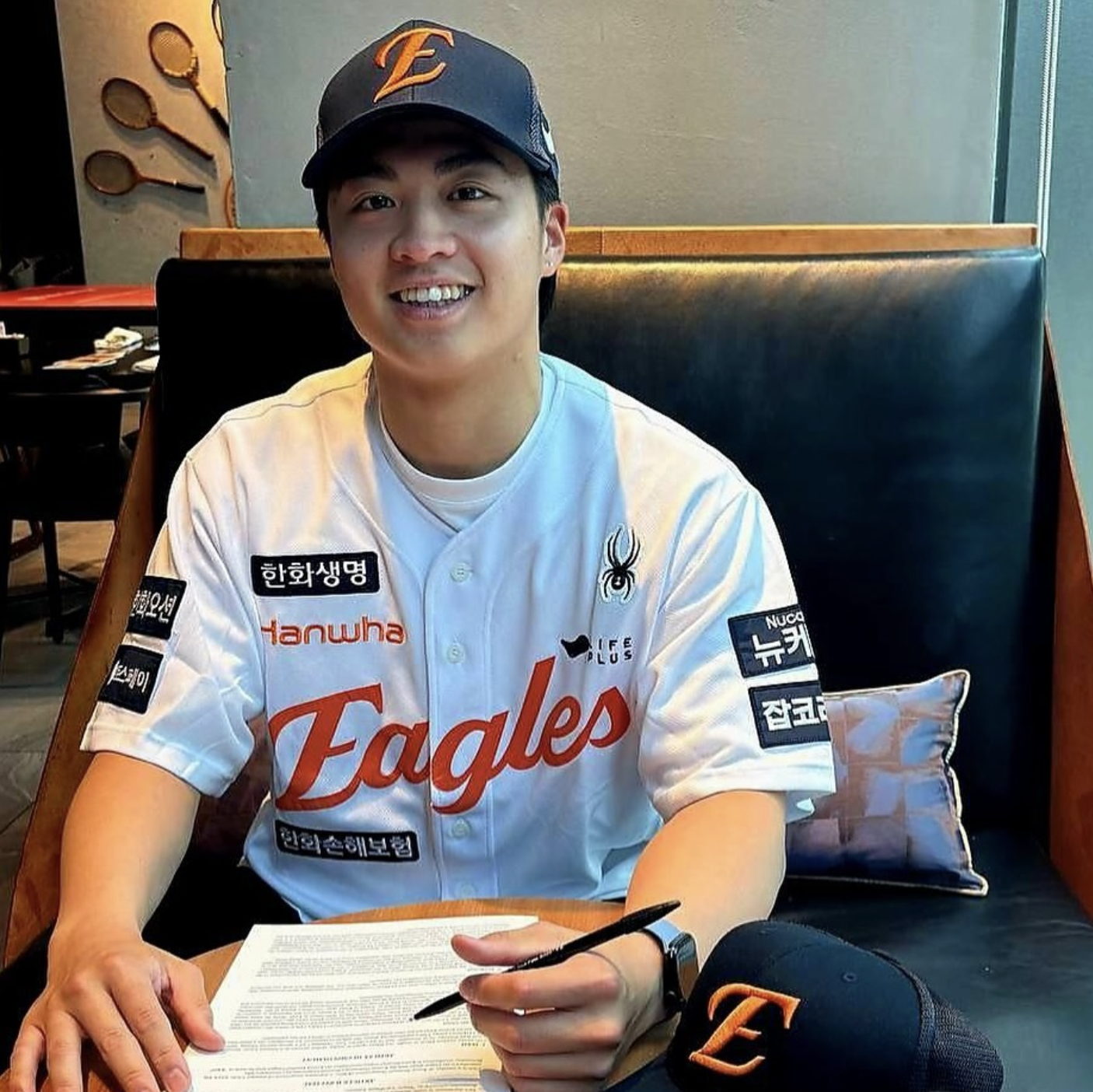 Photo: Wang Yan-Cheng signs a KBO contract with the Hanwha Eagles. (Photo via Hanwha Eagles on Instagram)