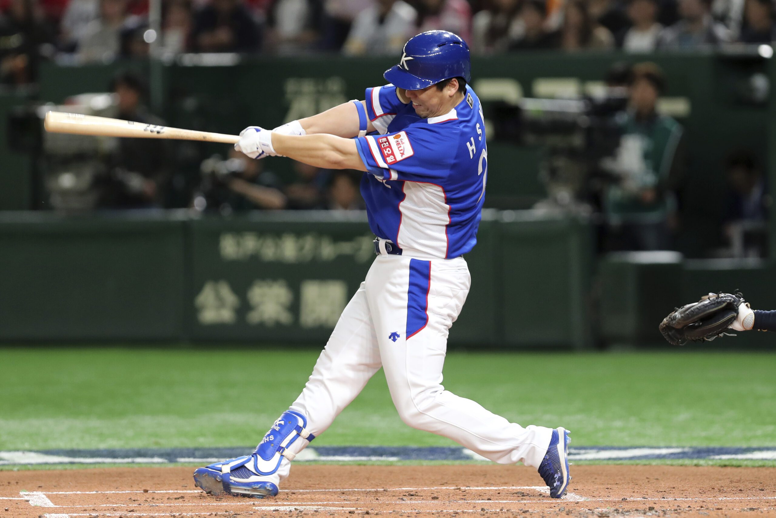 Photo: Kim Hyun-soo hits a solo home run off Japan starting pitcher Shun Yamaguchi in the first inning of their Premier12 baseball tournament final game at Tokyo Dome in Tokyo, Sunday, Nov. 17, 2019. (AP Photo/Toru Takahashi)