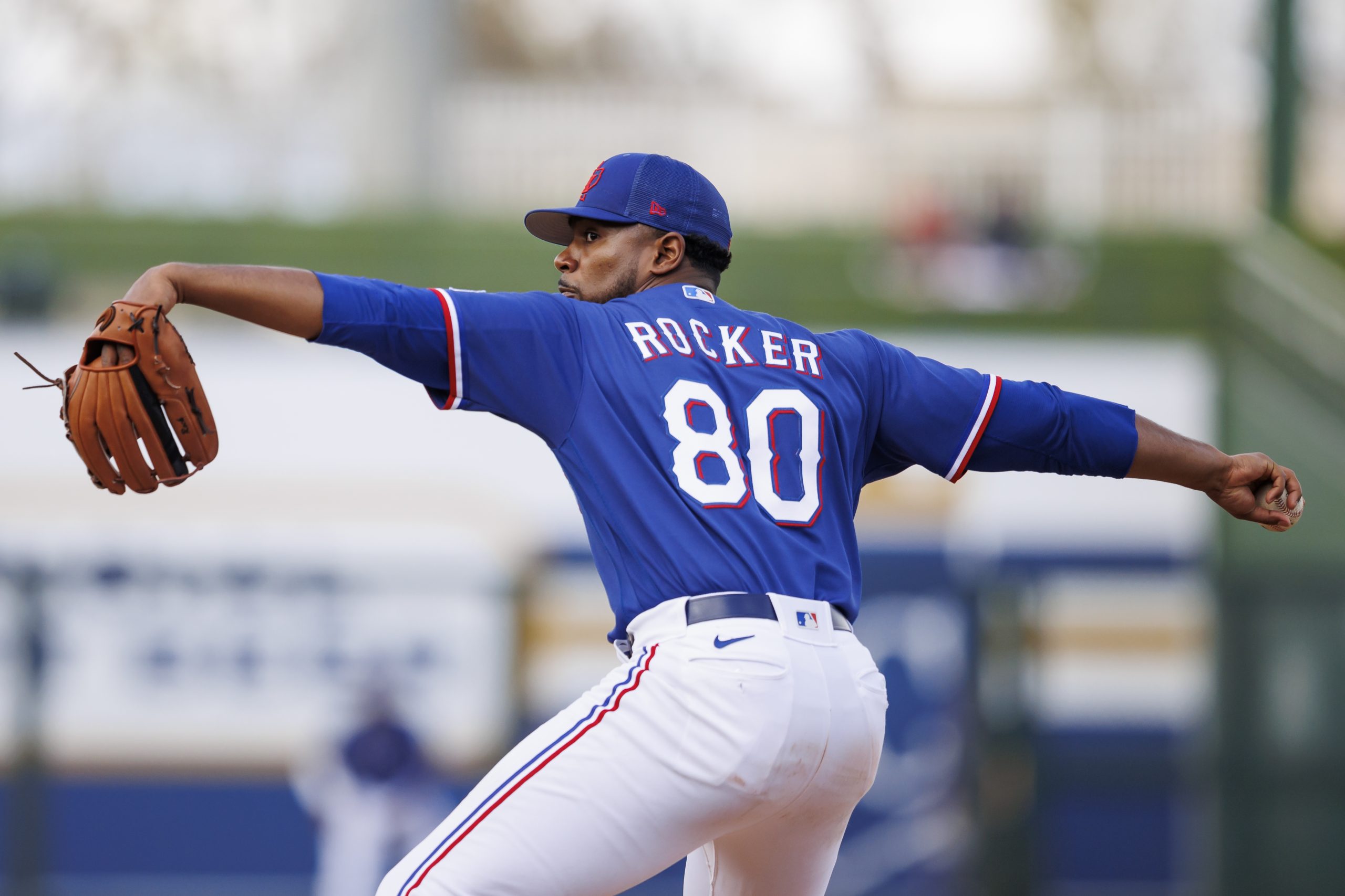 Photo Credit: Kumar Rocker #80 of the Texas Rangers delivers a pitch during a spring training game against the Colorado Rockies at Surprise Stadium on February 28, 2023 in Surprise, Arizona. (Photo by Bailey Orr/Texas Rangers/Getty Images)