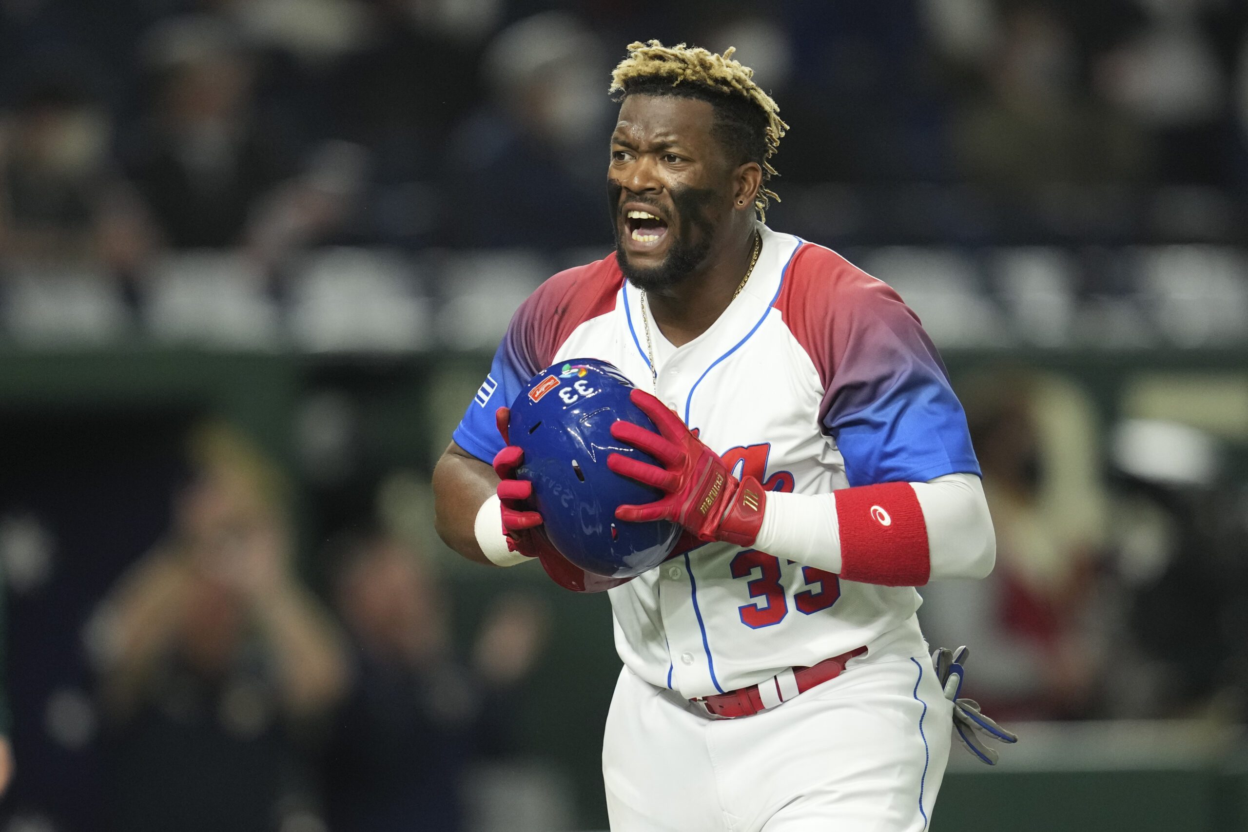 Photo: Yadir Drake of Cuba reacts while batting during the World Baseball Classic quarterfinal game between Cuba and Australia at the Tokyo Dome Tokyo, Wednesday, March 15, 2023. Drake will play for the Aguilas de Mexicali in the Liga ARCO Mexicana del Pacifico this winter. (AP Photo/Toru Hanai)