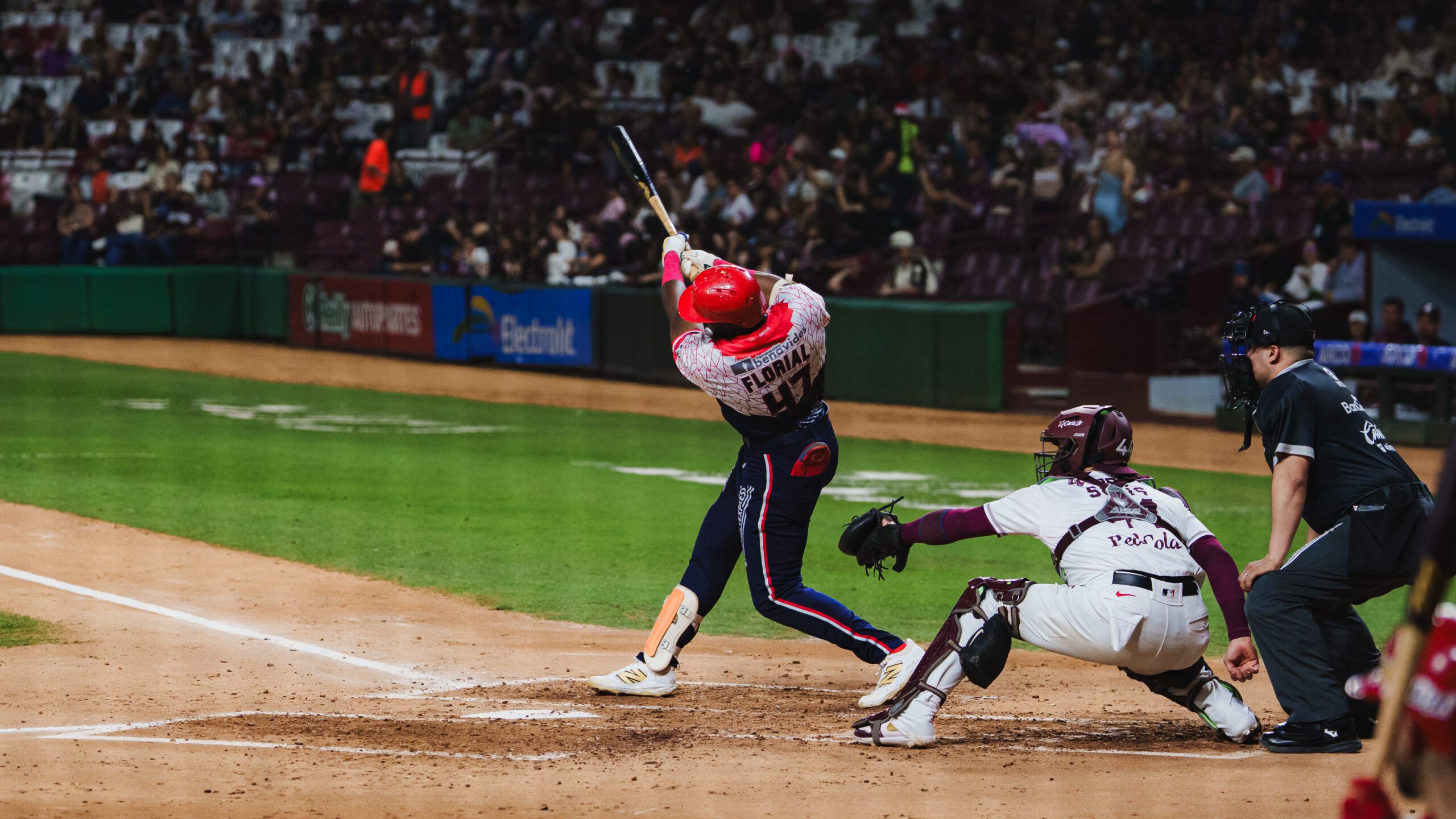 Photo: Estevan Florial hit his sixth homer of the season as the Aguilas de Mexicali won Roberto Vizcarra’s managerial debut. (Photo courtesy of the Aguilas de Mexicali)