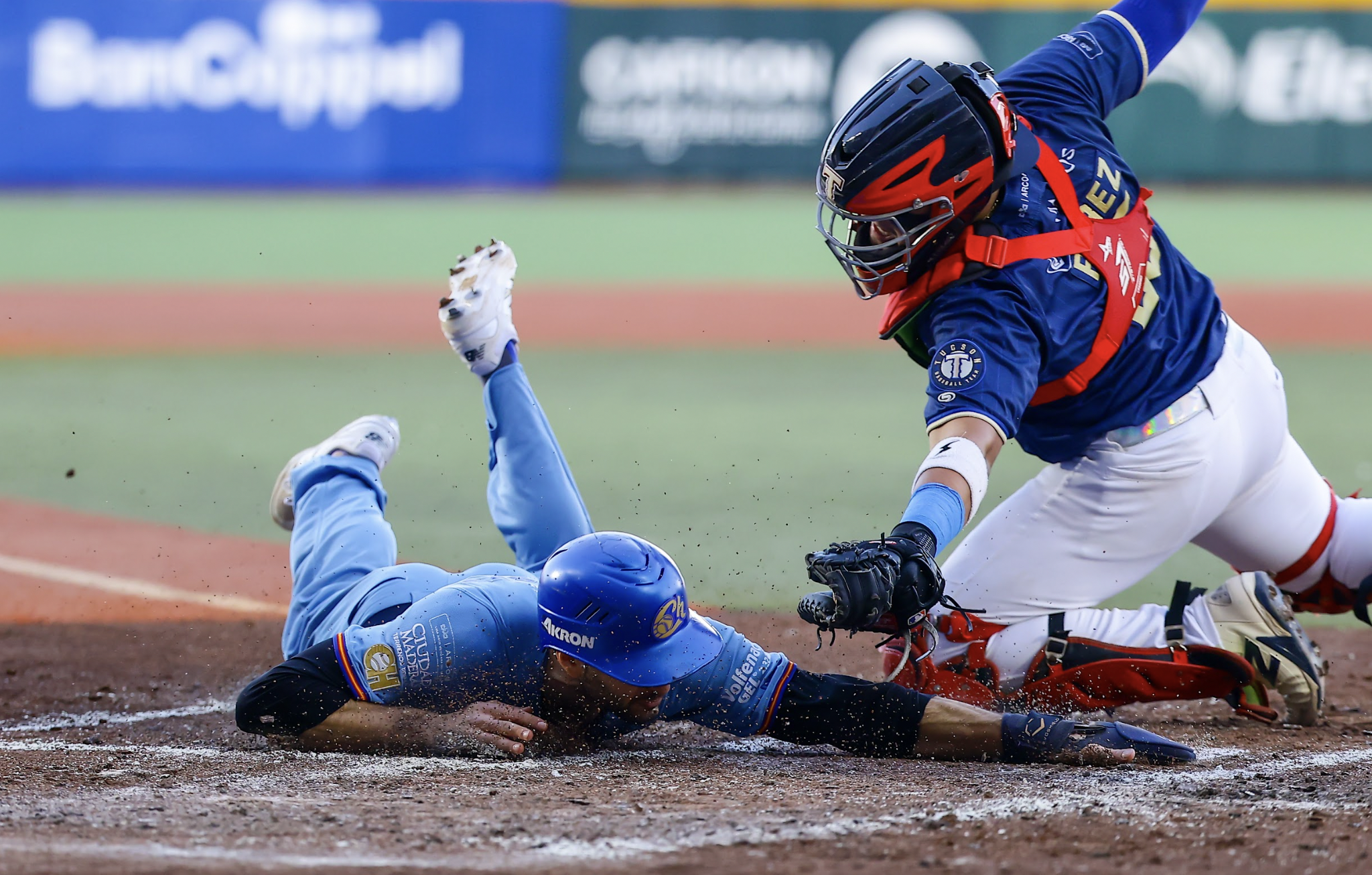 Photo: Michael Wielansky slides home headfirst to score for the Charros de Jalisco in their 6-5 win on Sunday. (Photo courtesy of the Charros de Jalisco)