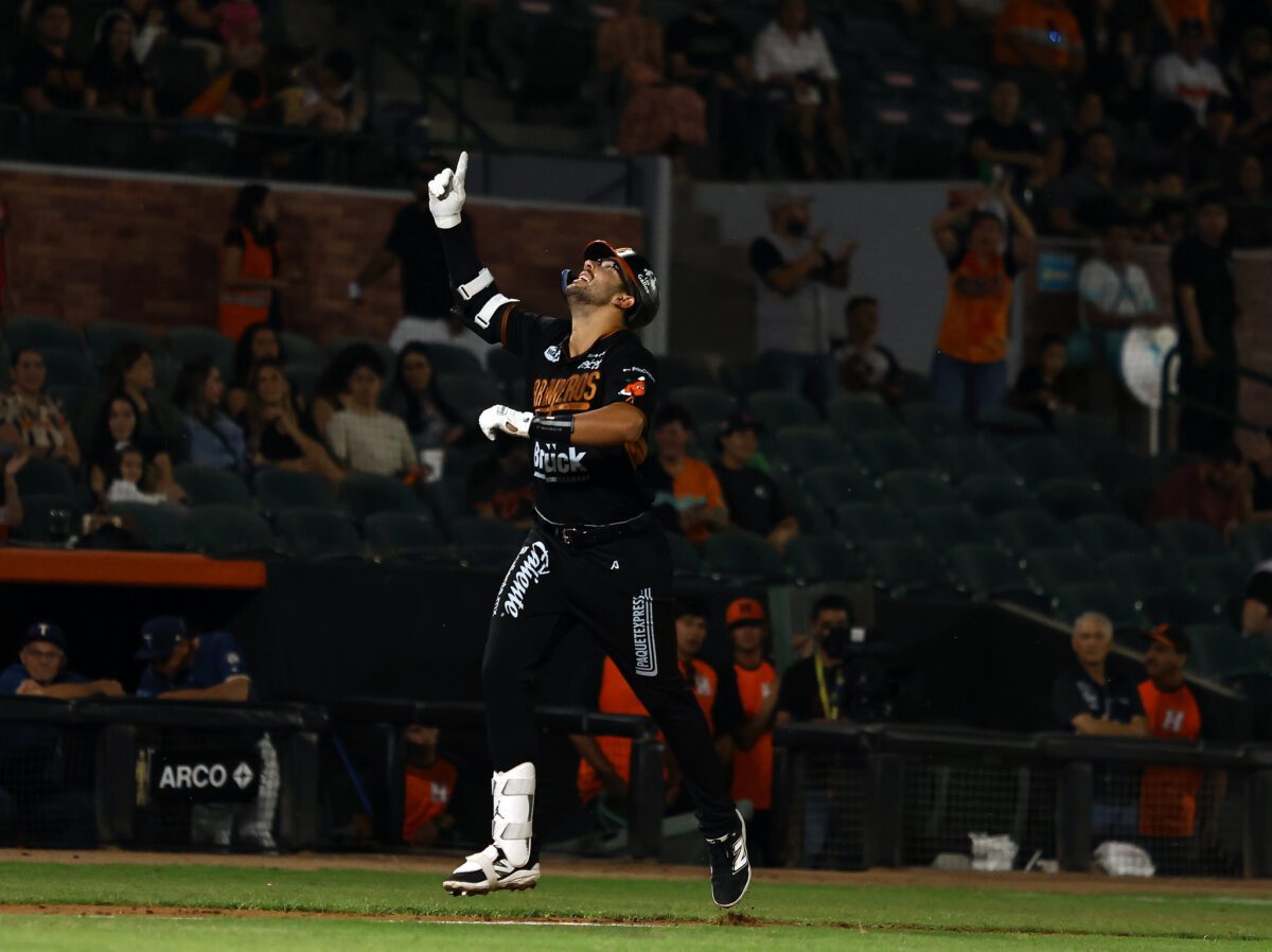 Photo: Darick Hall of the Naranjeros de Hermosillo celebrates his grand slam in the seventh inning of a win against the Tucson Baseball team on Oct. 19. (Photo courtesy of the Naranjeros de Hermosillo)