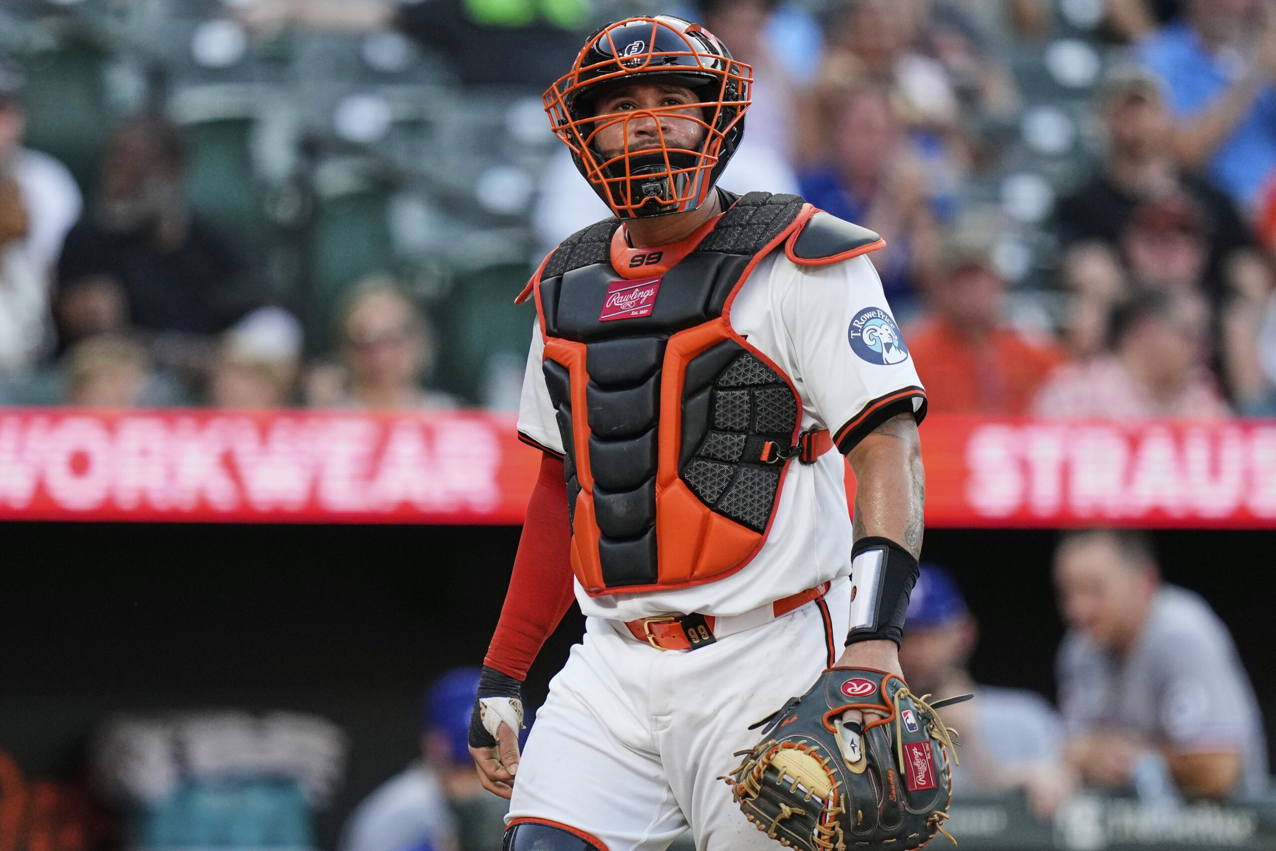 Photo: Baltimore Orioles catcher Gary Sanchez reacts after Texas Rangers’ Corey Seager scored a run during the fourth inning of a baseball game, Tuesday, June 24, 2025, in Baltimore. (AP Photo/Stephanie Scarbrough)