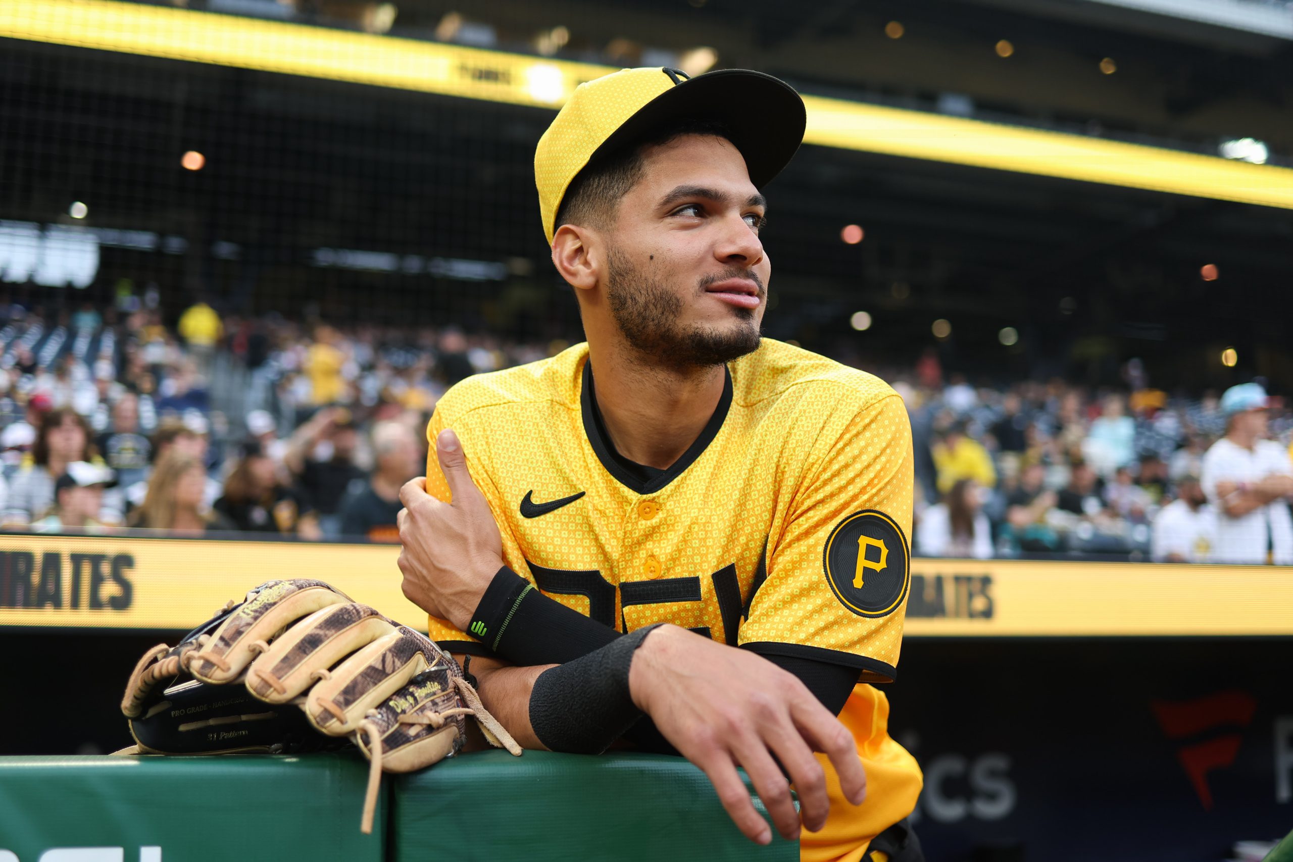 Photo Credit: Tucupita Marcano #30 of the Pittsburgh Pirates looks on from the dugout. (Photo by Rob Tringali/MLB Photos via Getty Images)