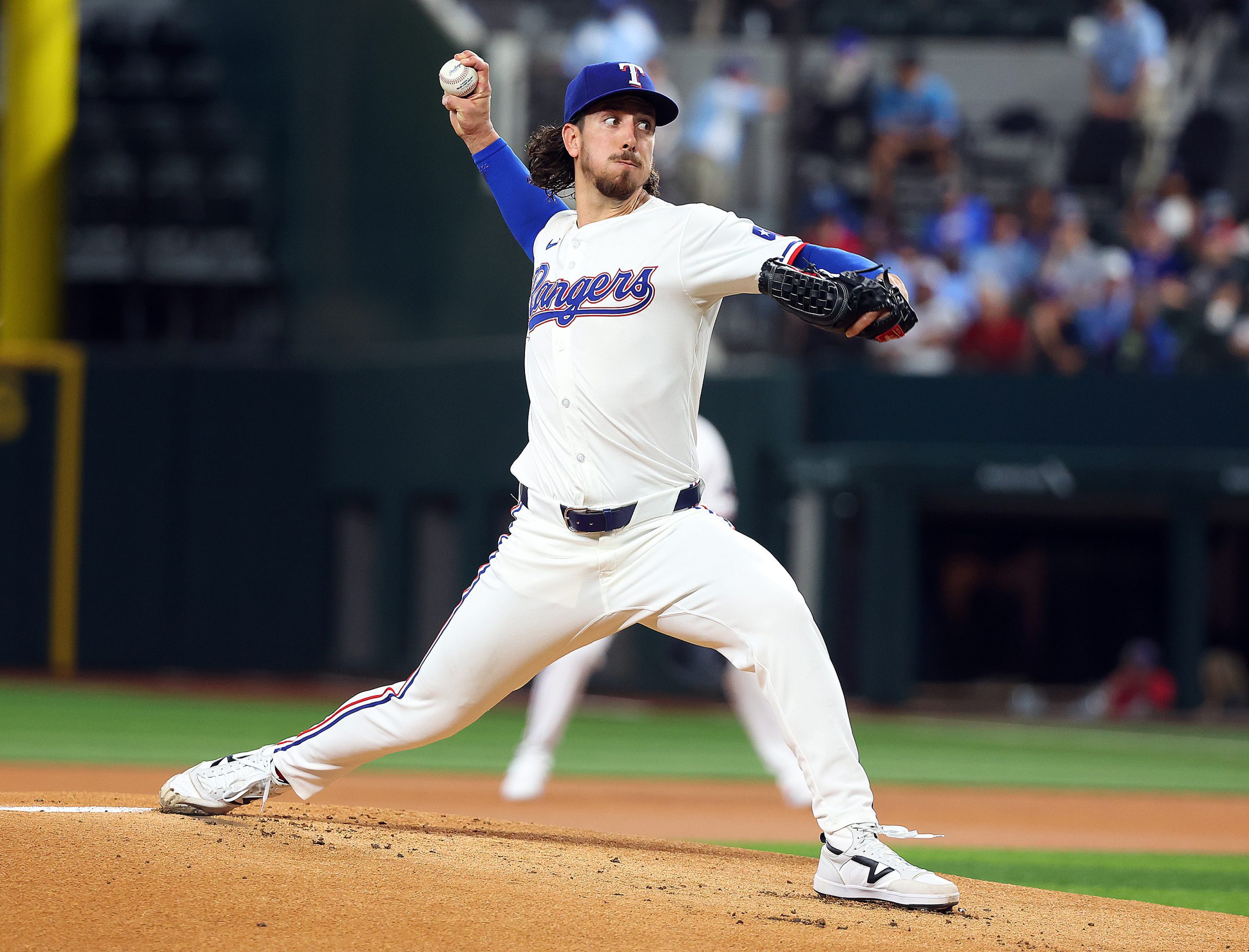 Photo Credit: Michael Lorenzen #23 of the Texas Rangers pitches in the first inning against the Chicago White Sox at Globe Life Field on July 22, 2024 in Arlington, Texas. (Photo by Richard Rodriguez/Getty Images)