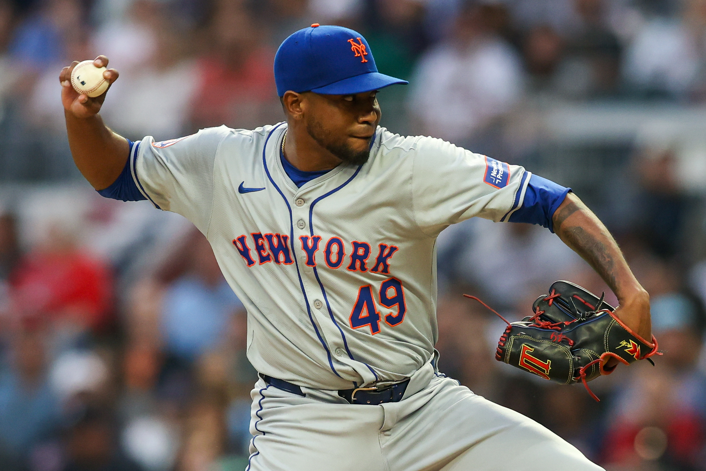 Photo: Julio Teheran of the New York Mets pitches against the Atlanta Braves in the first inning at Truist Park on April 8, 2024 in Atlanta, Georgia. (Photo by Brett Davis/Getty Images)