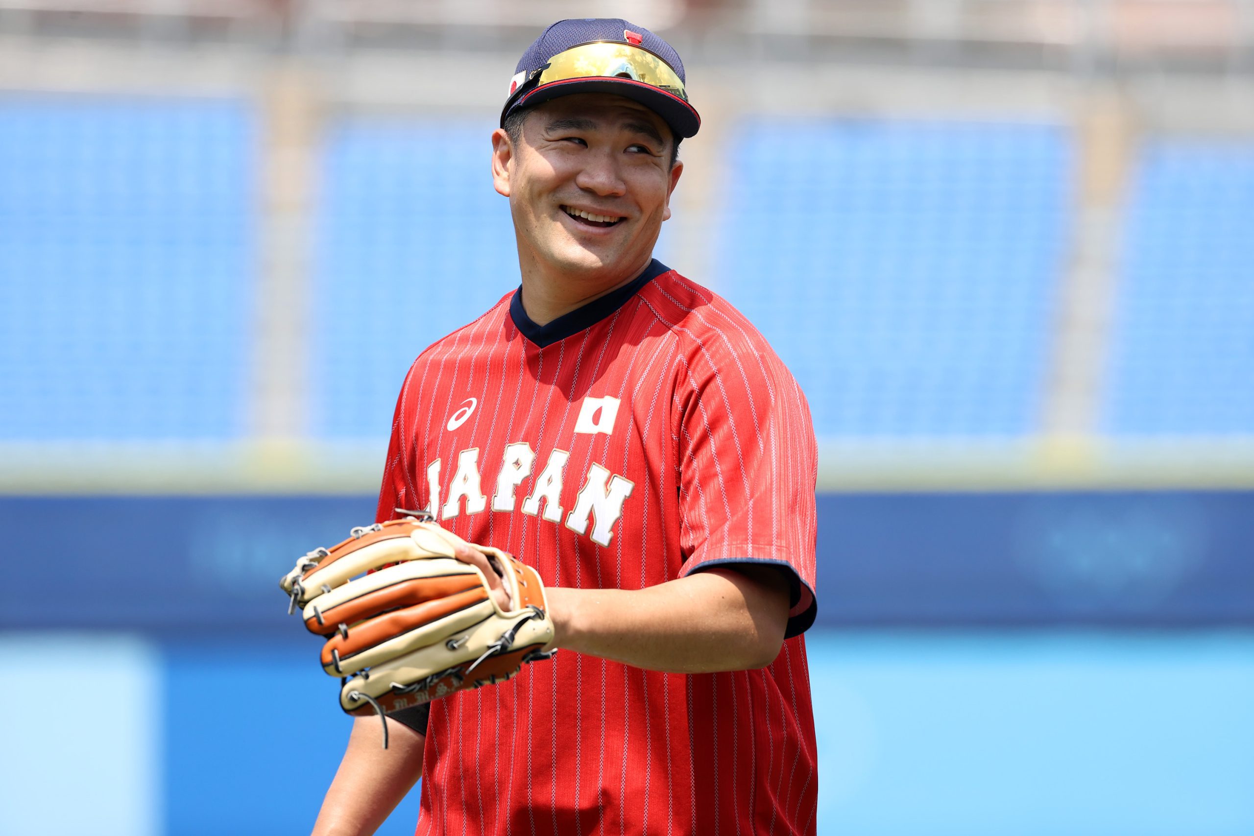 Photo Credit: Masahiro Tanaka #18 of Team Japan warms up before the game against Team Mexico during the baseball opening round Group A game on day eight of the Tokyo 2020 Olympic Games at Yokohama Baseball Stadium on July 31, 2021 in Yokohama, Kanagawa, Japan. (Photo by Koji Watanabe/Getty Images)