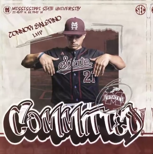 Left-handed pitcher Connor Salerno announced his commitment to Mississippi State on Tuesday. According to Perfect Game, he is ranked 11th nationally in the 2027 class and is also the second-best left-handed pitcher in the class.