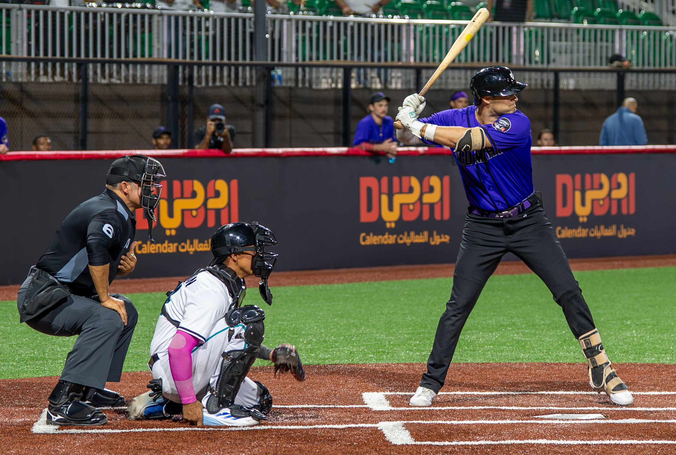 Photo: Brantley Bell bats for the Mumbai Cobras against the Mid East Falcons. (Courtesy of Baseball United)