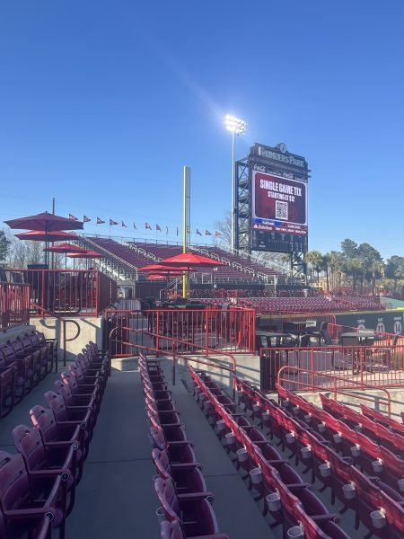 Unique Seating Options – The South Carolina athletic department has clearly put thoughtful effort into different kinds of seating for fans. In left field, there is the Coca-Cola Pavilion that has tables and umbrellas set up for fans. It is a good spot to be for Gamecock baseball games for those with restless legs. There are also club level seats and suites located on both sides of the press box on Founders Park’s second level.