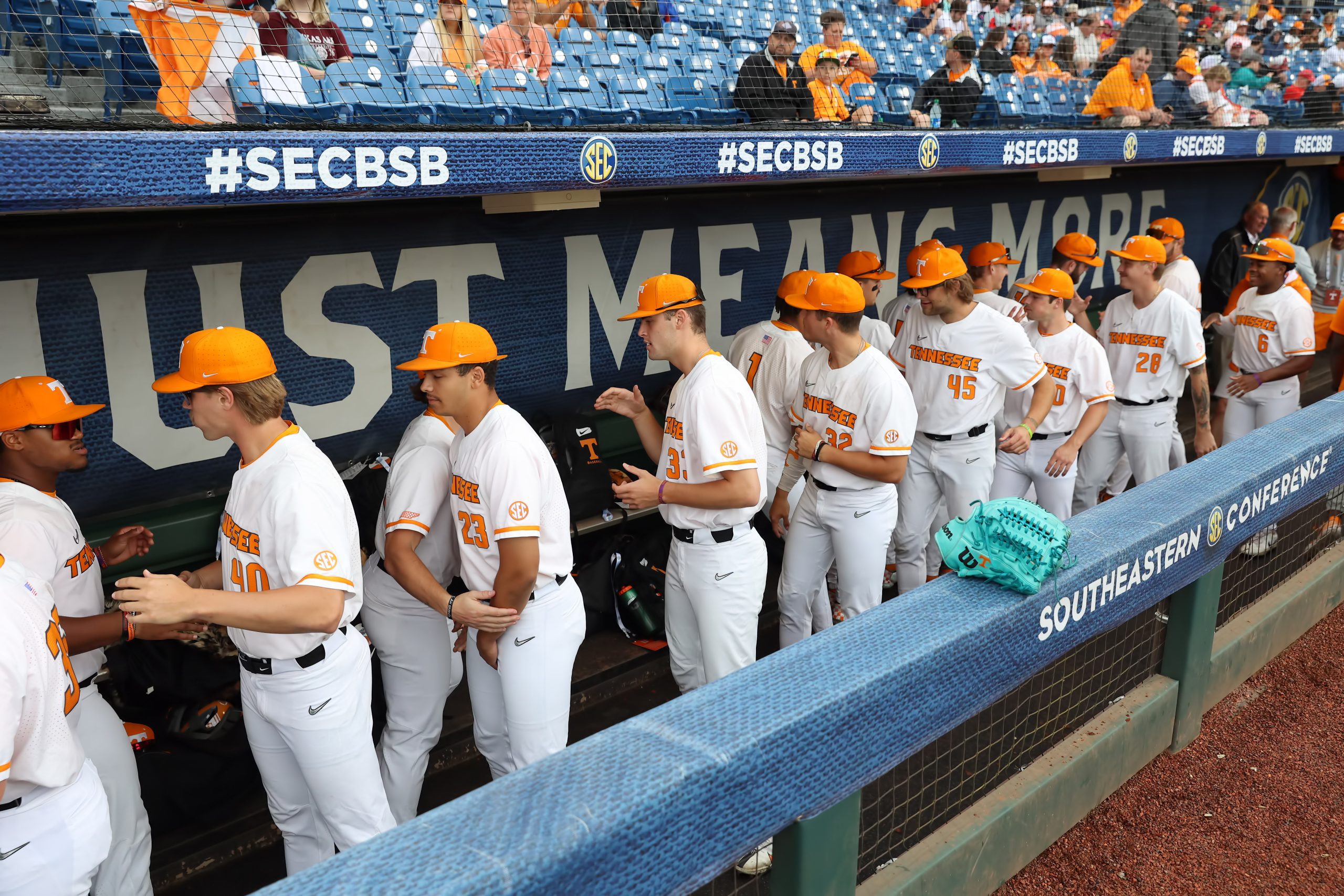 Tennessee Volunteers players in the dugout. (Photo by Michael Wade/Icon Sportswire via Getty Images)