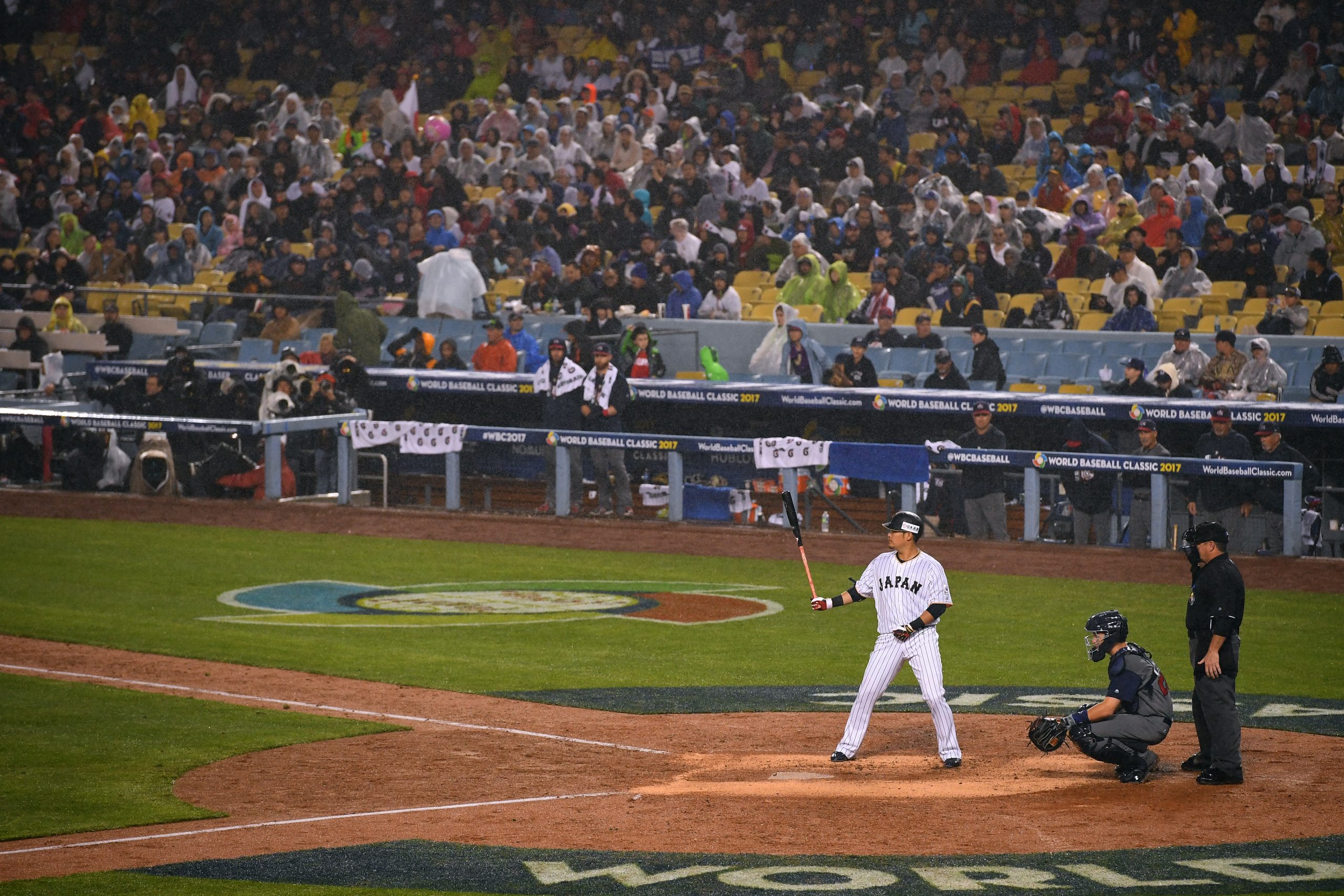 Yoshitomo Tsutsugo #25 of Japan is seen during the Game 2 of the Championship Round of the 2017 World Baseball Classic between United States and Japan at Dodger Stadium on March 21, 2017 in Los Angeles, California. (Photo by Masterpress/Getty Images)