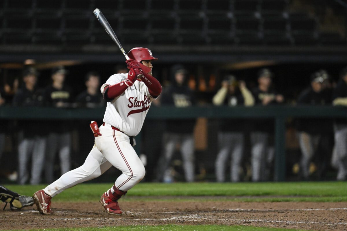 Photo: Stanford’s Rintaro Sasaki hits a single against Wake Forest during the twelfth inning of an NCAA college baseball game Friday, April 25, 2025, in Stanford, Calif. (AP Photo/Eakin Howard)