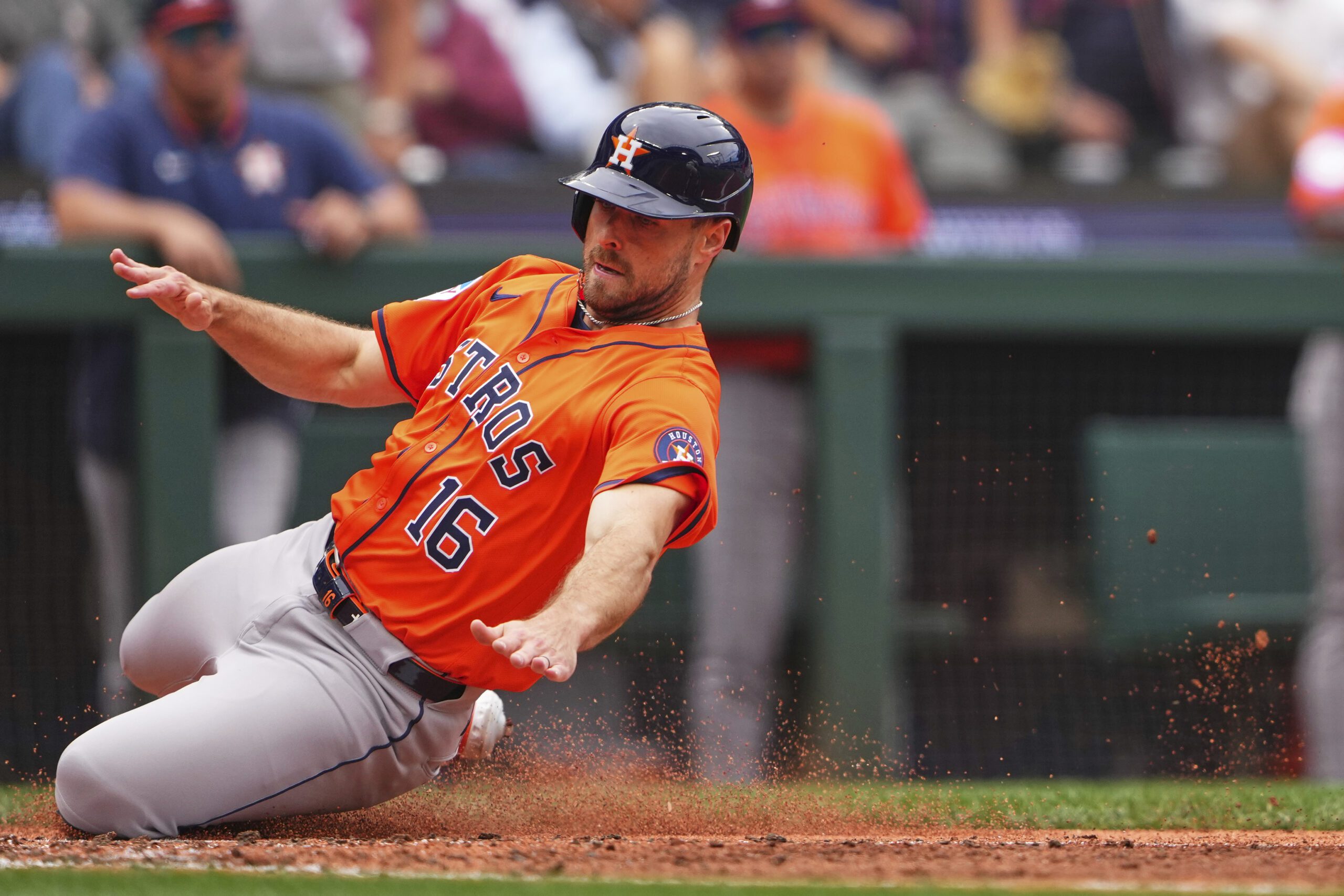 Photo: Houston Astros’ Cooper Hummel scores on a two-run double by Cam Smith against the Seattle Mariners during the fifth inning of a baseball game Sunday, July 20, 2025, in Seattle. (AP Photo/Lindsey Wasson)