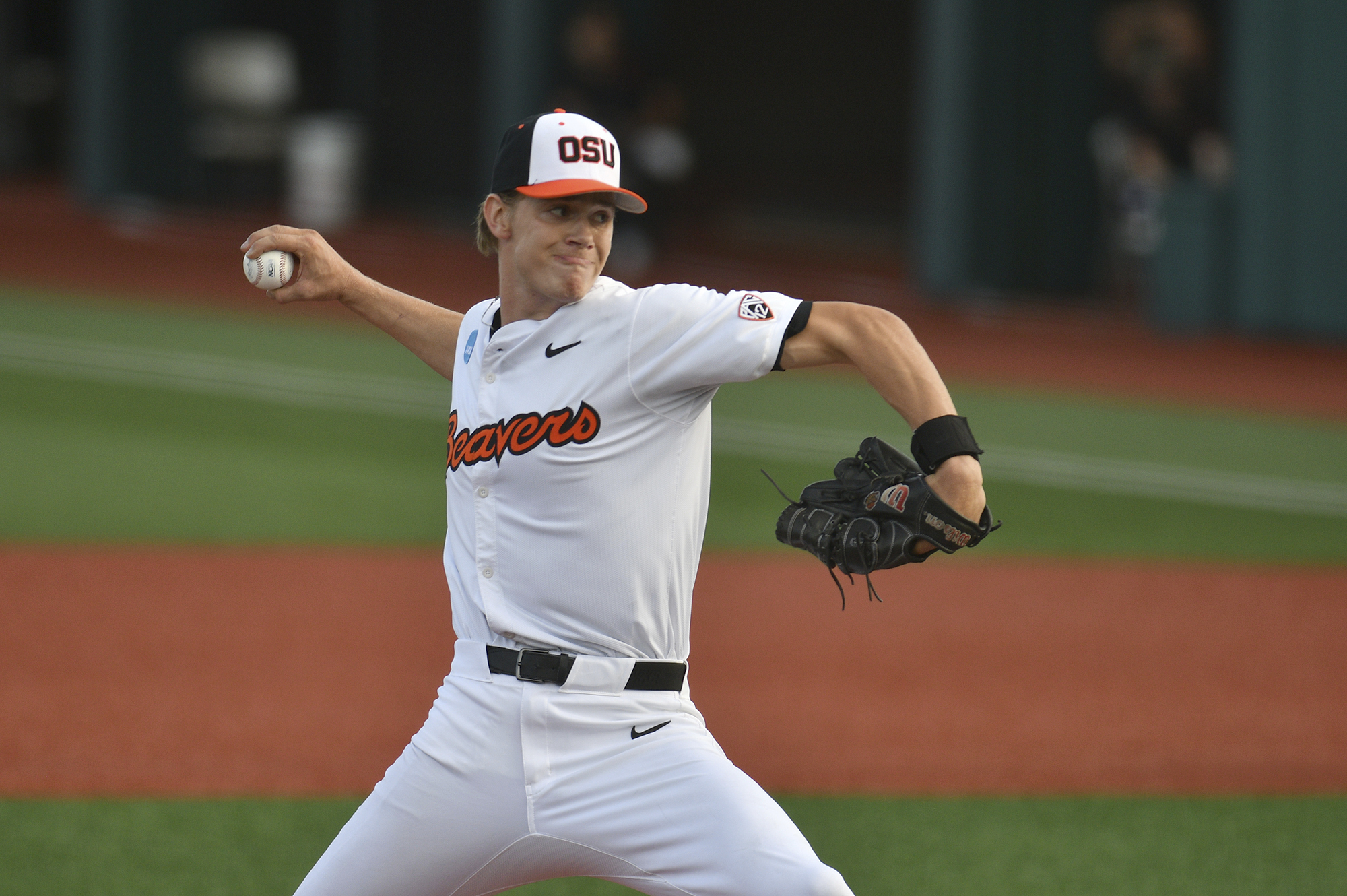 PHOTO: Oregon State pitcher Laif Palmer (33) pitches against Saint Mary’s during an NCAA regional baseball game on Friday, May 30, 2025, in Corvallis, Ore. (AP Photo/Mark Ylen)
