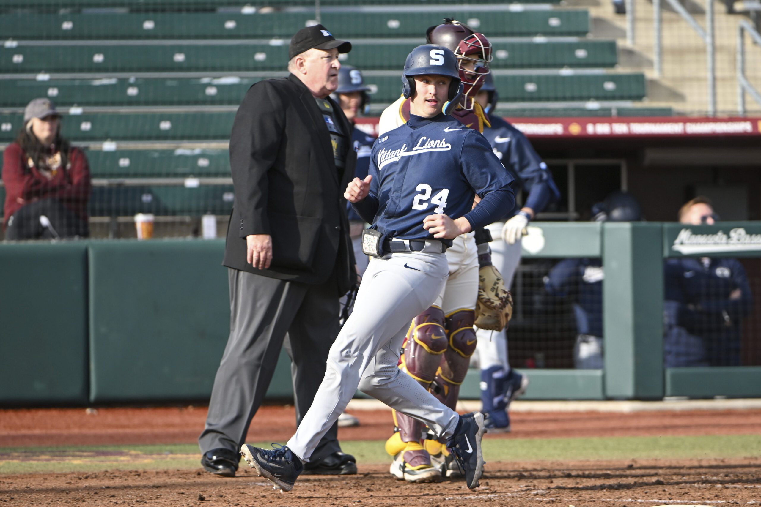 Photo: Penn State’s Jesse Jaconski (24) scores on a single hit by Paxton Kling against Minnesota in the fifth inning during an NCAA baseball game on Friday, April 4, 2025 in Minneapolis. Penn State won 10-4. (AP Photo/Craig Lassig)