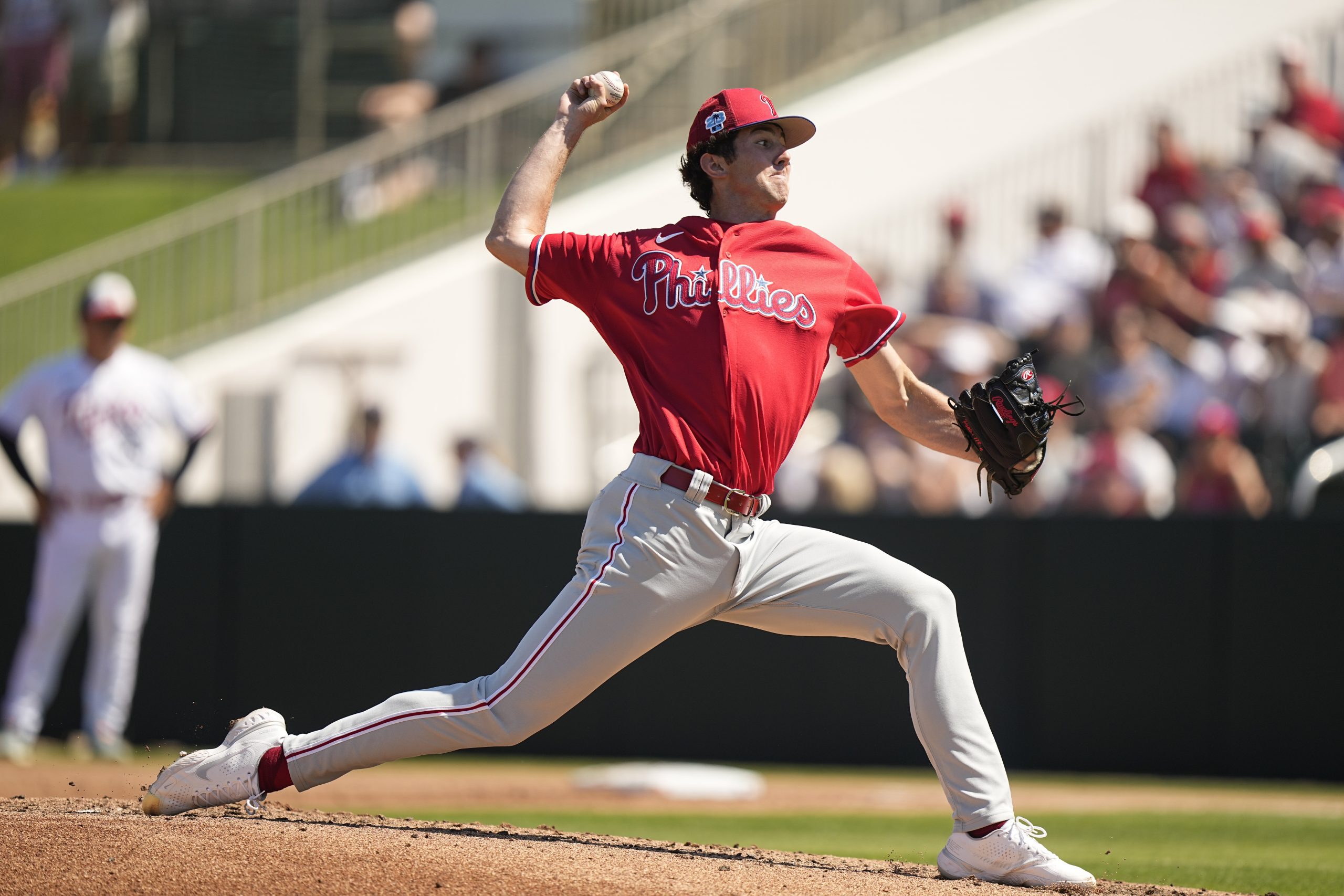 Philadelphia Phillies’ pitcher Andrew Painter, delivers in the first inning during a spring training baseball game against the Minnesota Twins, Wednesday, March 1, 2023, in Fort Myers, Fla. (AP Photo/Brynn Anderson)