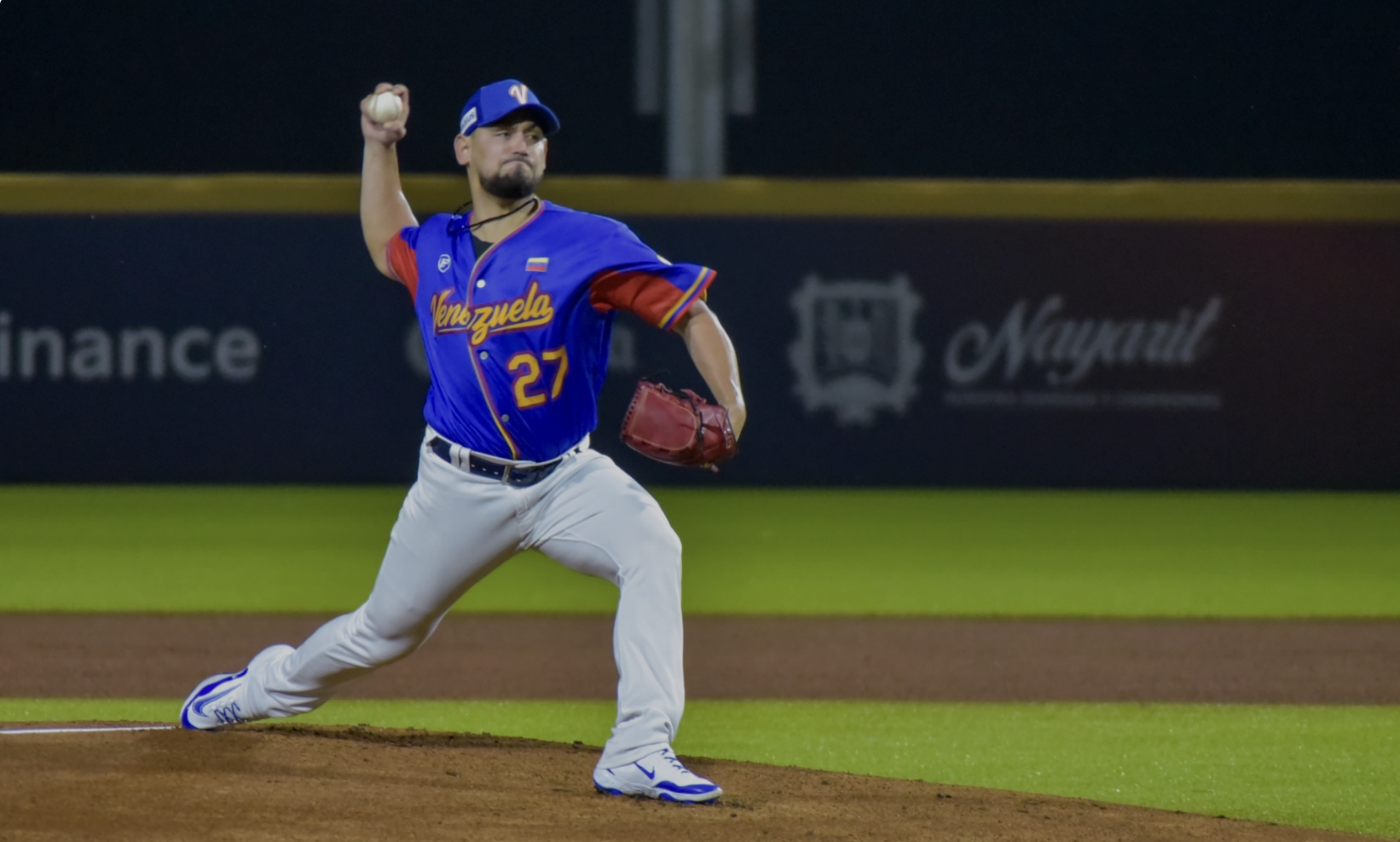 Photo: Mario Sanchez delivers a pitch for Venezuela in a 5-3 win against the U.S. at Coloso del Pacifico in Tepic, Nayarit, Mexico at the 2024 WBSC Premier12. Sanchez went six innings and struck out 10. (Photo Courtesy of WBSC)