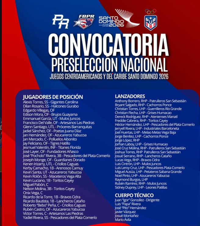 The pre-selection group blends experienced arms with emerging contributors from across the island. López, a former MLB All-Star, headlines the pitching staff alongside Rodríguez, who brings major league experience, and Burgos, who appeared in the 2026 World Baseball Classic and adds another experienced option on the left side.