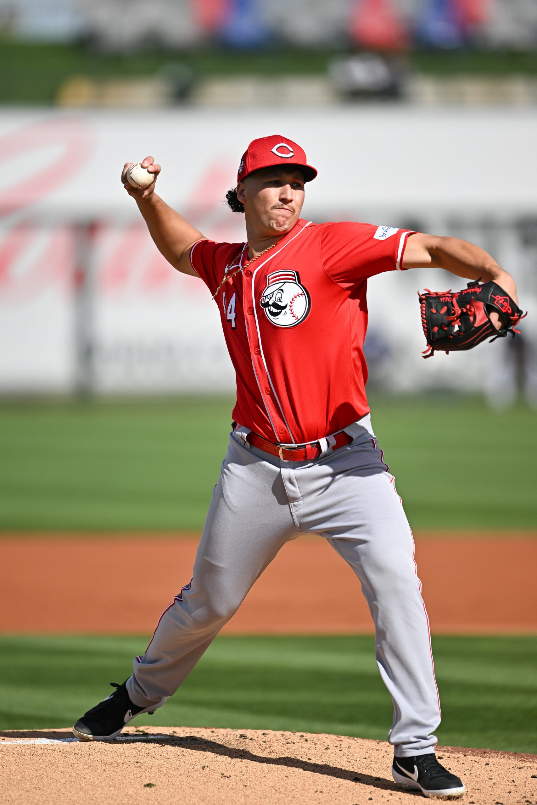 Photo Credit: Julian Aguiar #84 of the Cincinnati Reds throws a pitch during the first inning of a spring training Spring Breakout game. (Photo by Chris Bernacchi/Diamond Images via Getty Images)