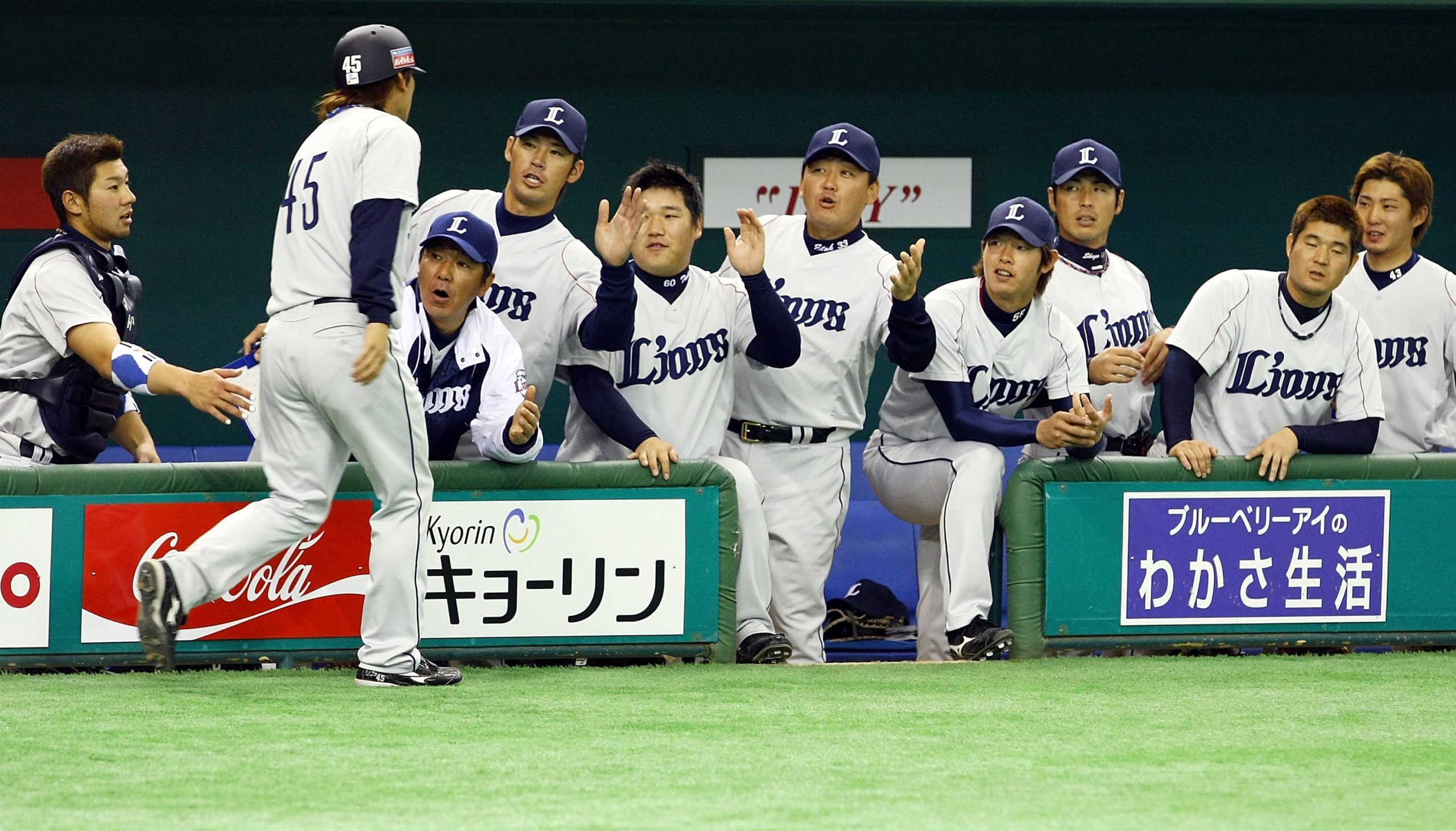 Photo Credit: Infielder Keisuke Mizuta #45 of Saitama Seibu Lions celebrates after scoring during a friendly match between South Korea and Saitama Seibu Lions at Tokyo Dome on March 2, 2009 in Tokyo, Japan. (Photo by Junko Kimura/Getty Images)
