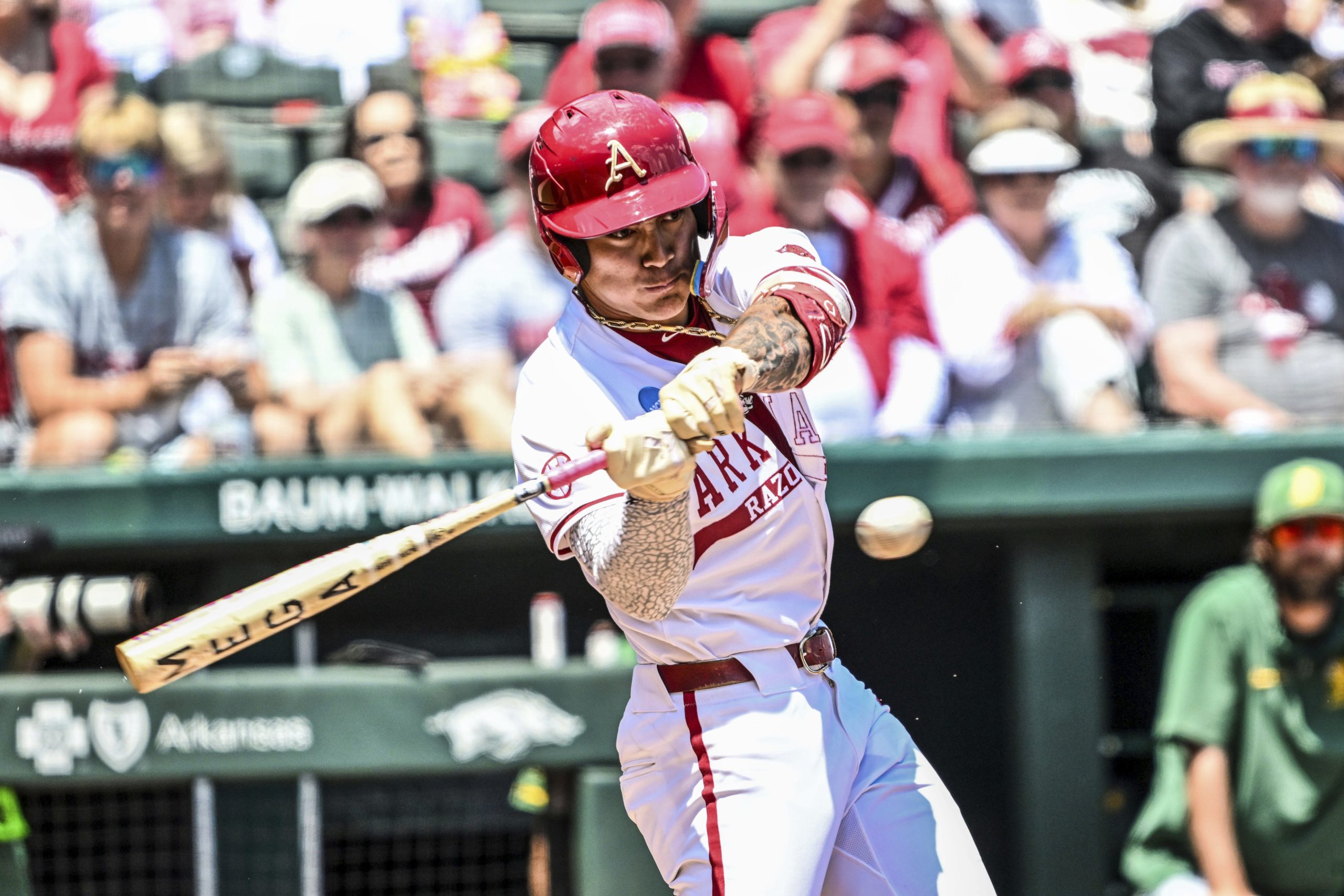 The Arkansas catcher talked about his performance all weekend with the media, saying, “I just stuck with my approach. I was just waiting on getting good pitches to hit, whether it was a fastball or a slider, and then just put a good swing on it.”