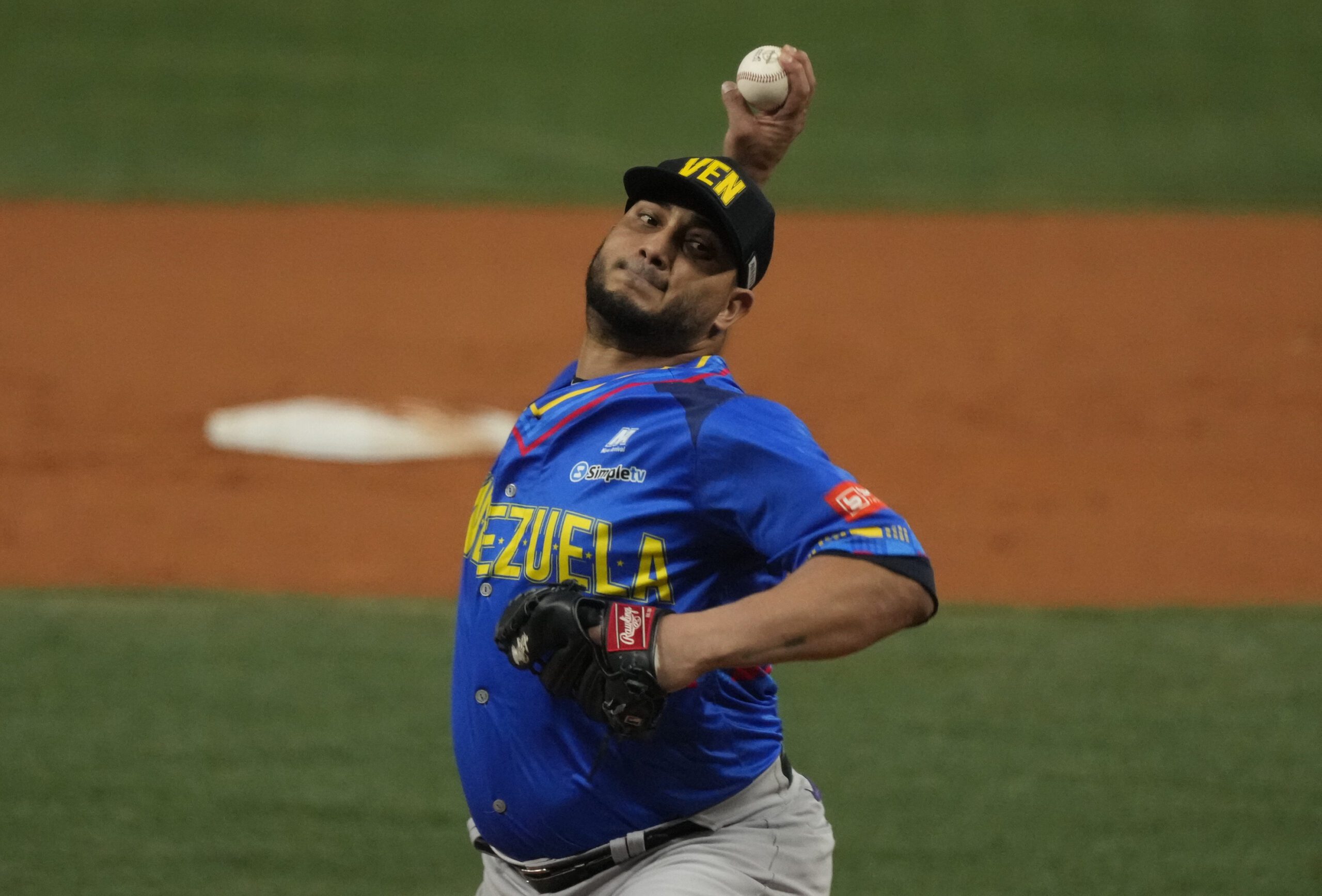 Photo: Venezuela’s Jhoulys Chacín pitches in the first inning against Colombia during a Caribbean Series baseball game in Caracas, Venezuela, Wednesday, Feb. 8, 2023. (AP Photo/Fernando Llano)