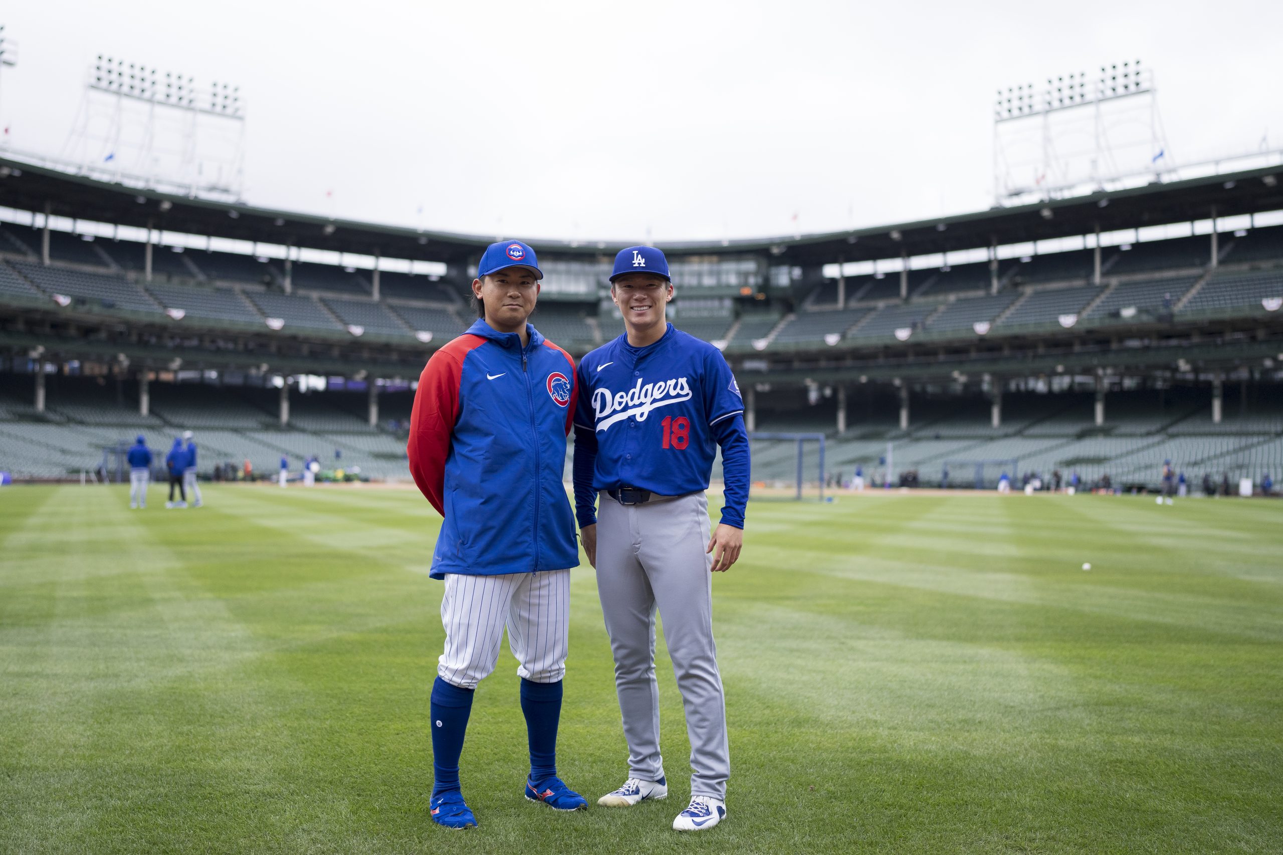 Photo Credit: Shota Imanaga of the Chicago Cubs and Yoshinobu Yamamoto of the Los Angeles Dodgers post for a photo before a game against the Los Angeles Dodgers at Wrigley Field on April 5, 2024 in Chicago, Illinois. (Photo by Matt Dirksen/Chicago Cubs/Getty Images)
