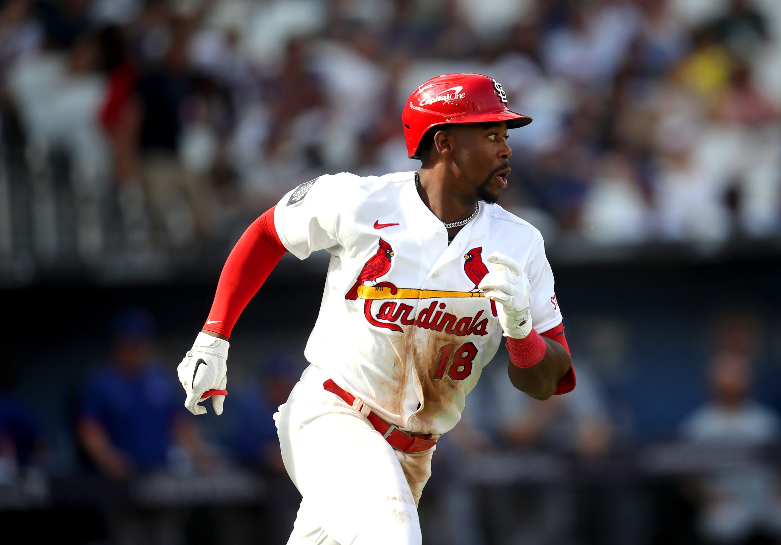 St. Louis Cardinals’ Jordan Walker runs between bases. (Photo by Simon Marper/PA Images via Getty Images)