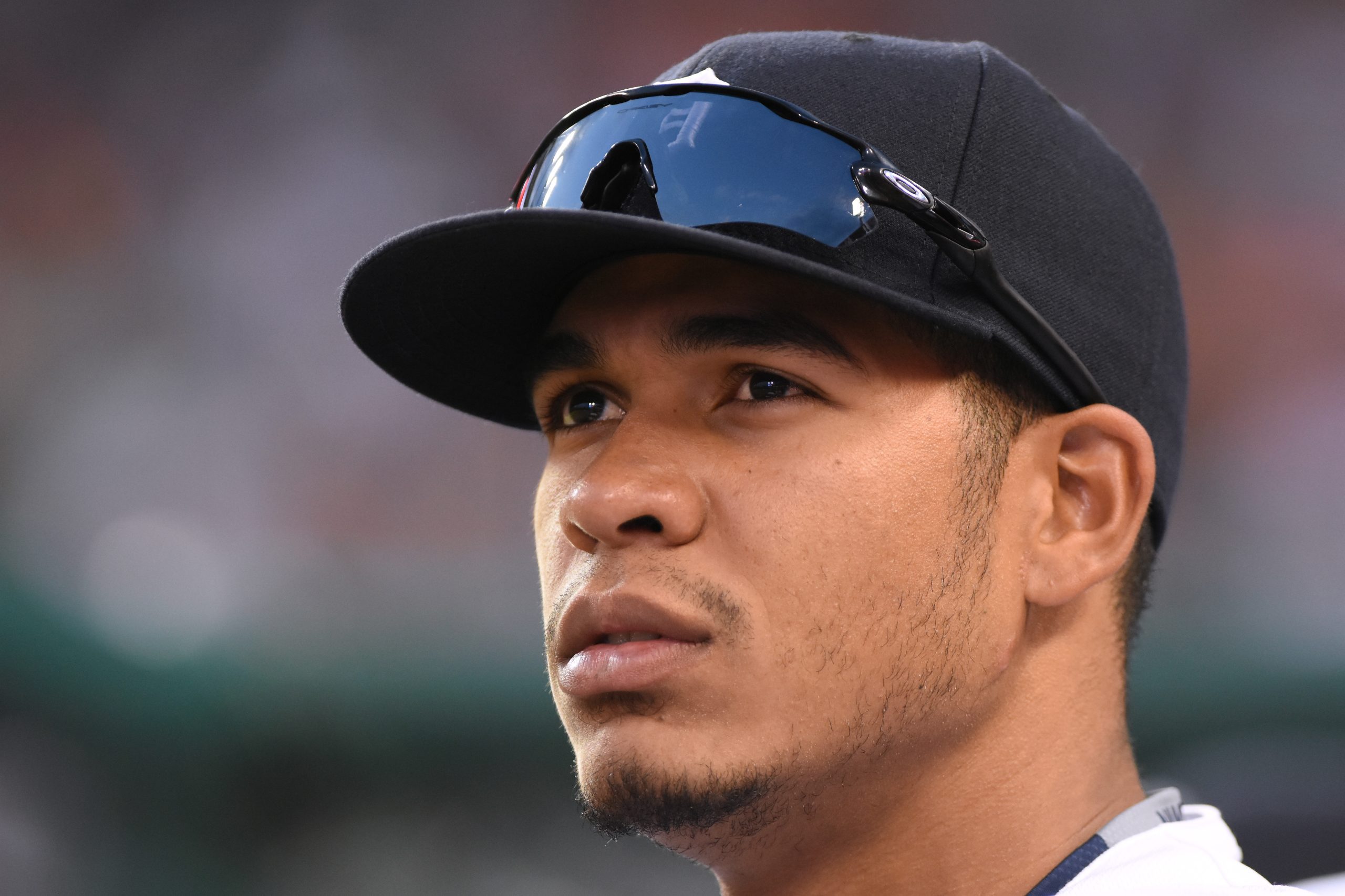 Photo Credit: Steven Moya #33 of the Detroit Tigers looks on from the dugout. (Photo by Mark Cunningham/MLB Photos via Getty Images)