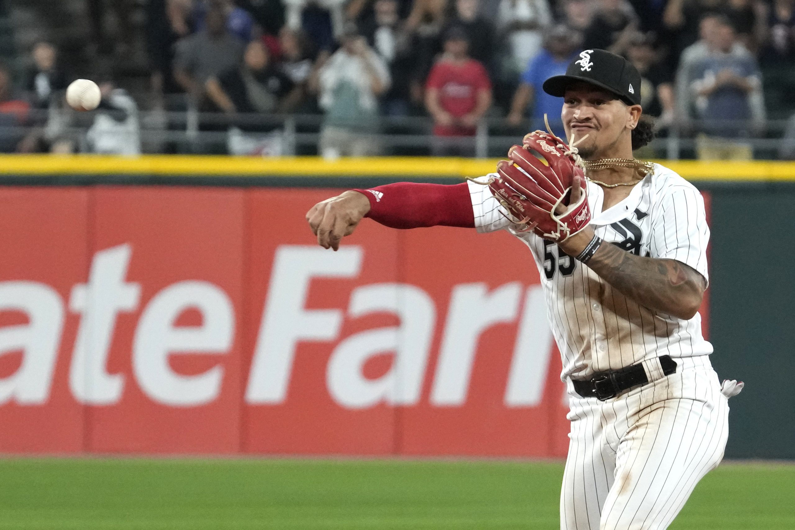 Photo: Chicago White Sox second baseman Jose Rodriguez throws out Texas Rangers’ Jonah Heim at first base during the ninth inning of a baseball game in Chicago, Tuesday, June 20, 2023. The White Sox won 7-6. (AP Photo/Nam Y. Huh)