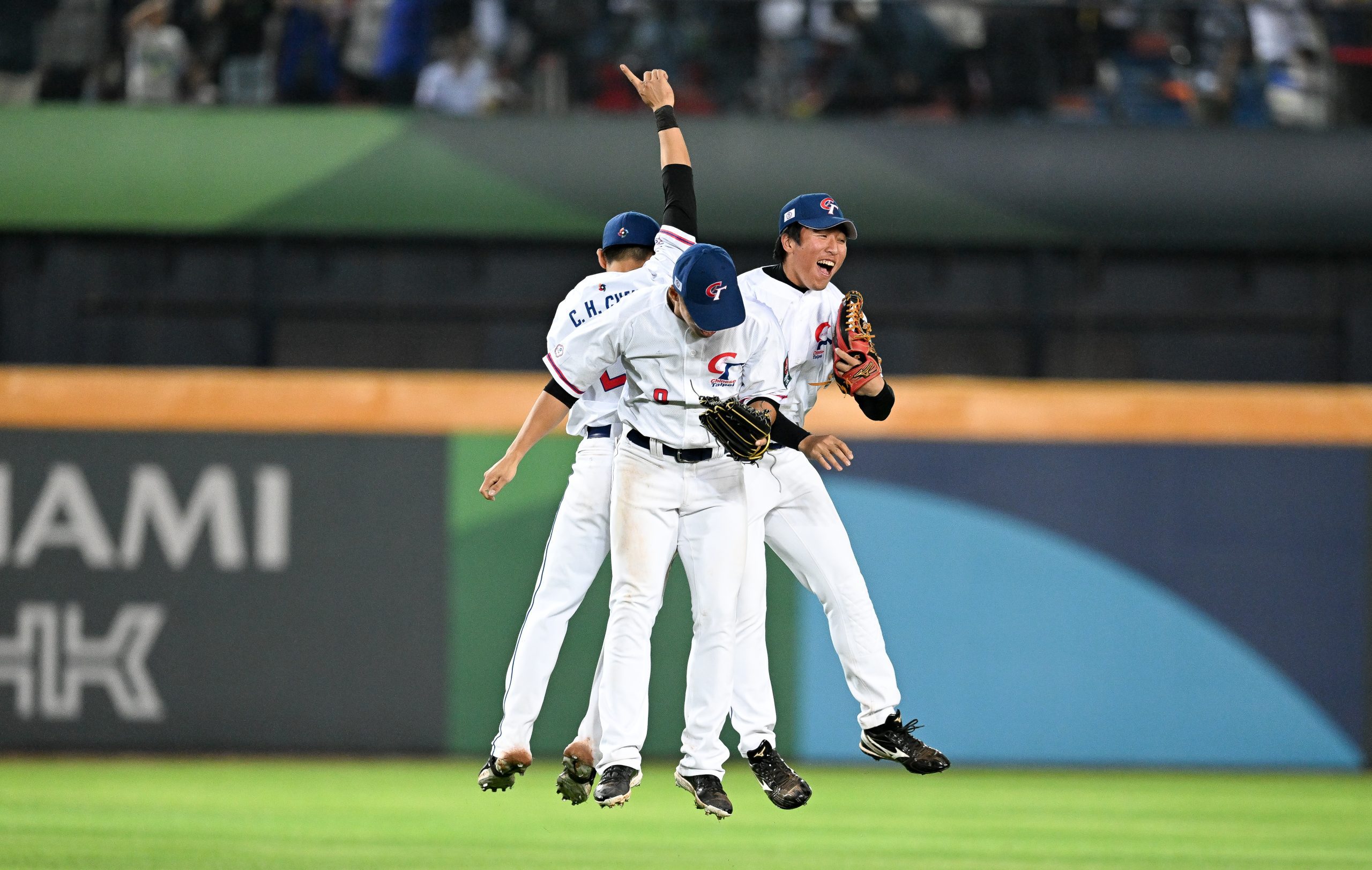 Photo Credit: Chieh Hsien Chen #24, Po Jung Wang #9,Chin Cheng #35 of Chinese Taipei celebrate after winning during the World Baseball Classic Pool A. (Photo by Gene Wang/Getty Images)