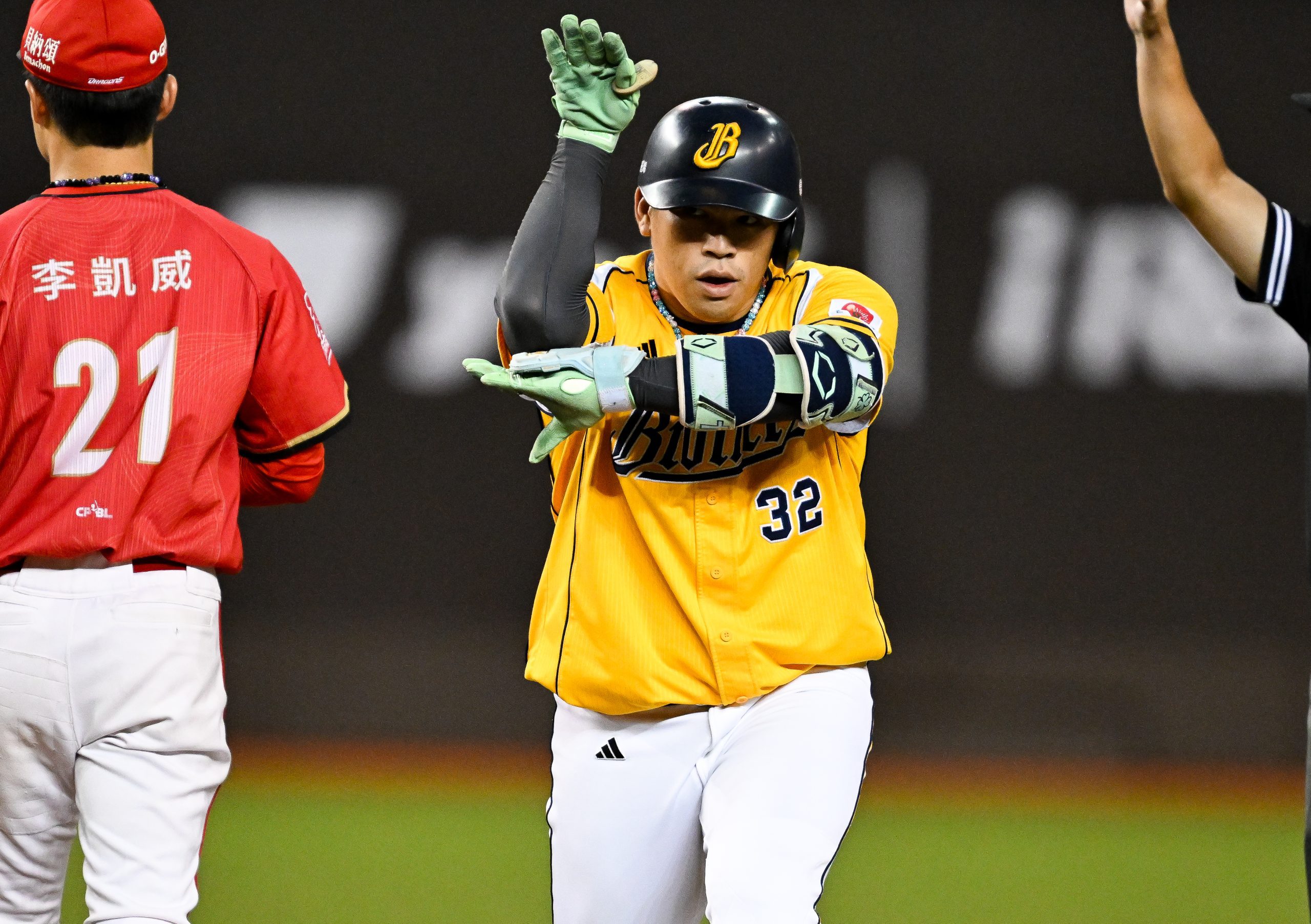 Photo Credit: Sung En Tseng #32 of CTBC brothers celebrates after hitting a double in the bottom of the fifth inning during the CPBL game between Wei Chuan Dragons and CTBC Brothers at Taipei Dome on September 22, 2024 in Taipei, Taiwan. (Photo by Gene Wang/Getty Images)