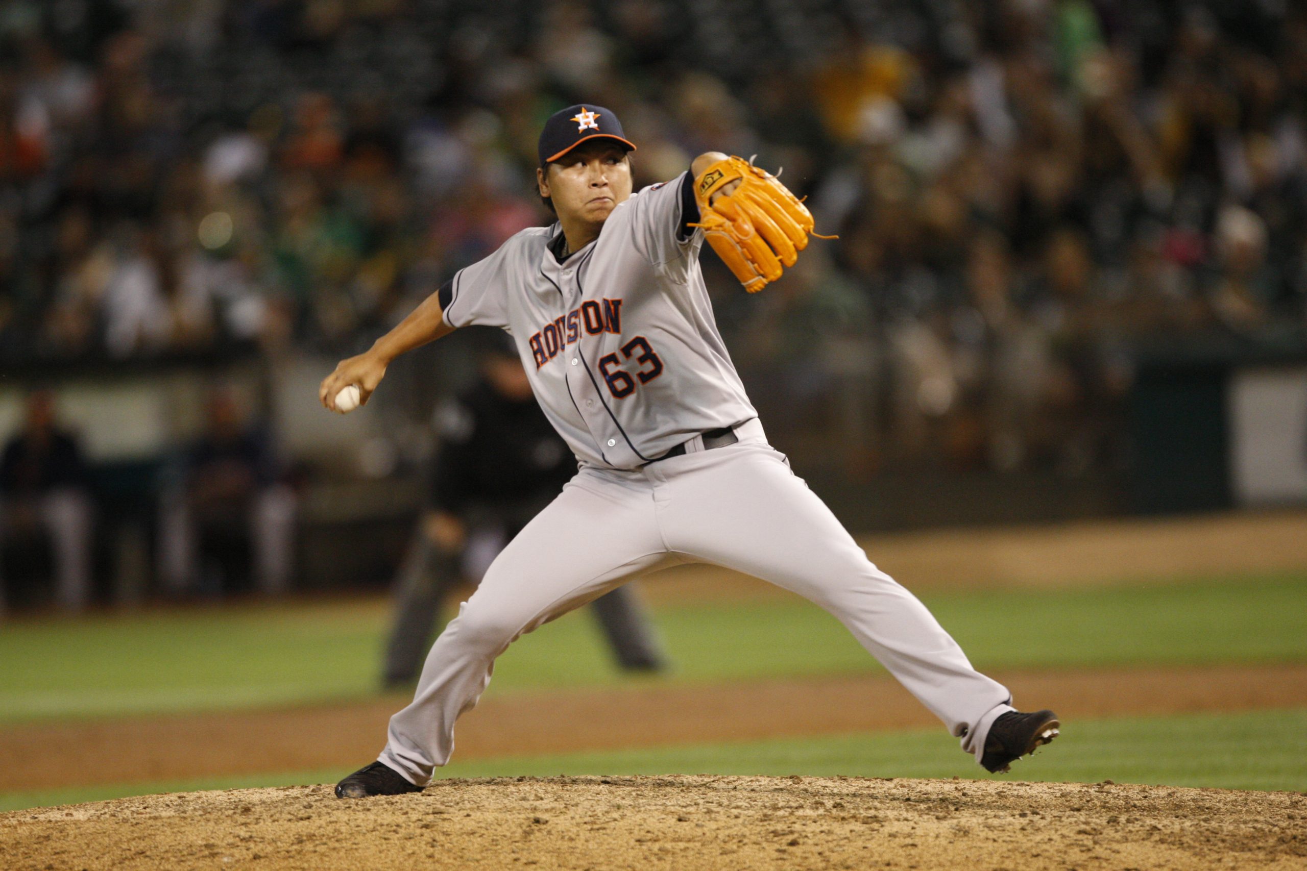 Photo Credit: Chia-Jen Lo #63 of the Houston Astros pitches during the game against the Oakland Athletics at O.co Coliseum on September 6, 2013 in Oakland, California. The Athletics defeated the Astros 7-5. (Photo by Michael Zagaris/Oakland Athletics/Getty Images)