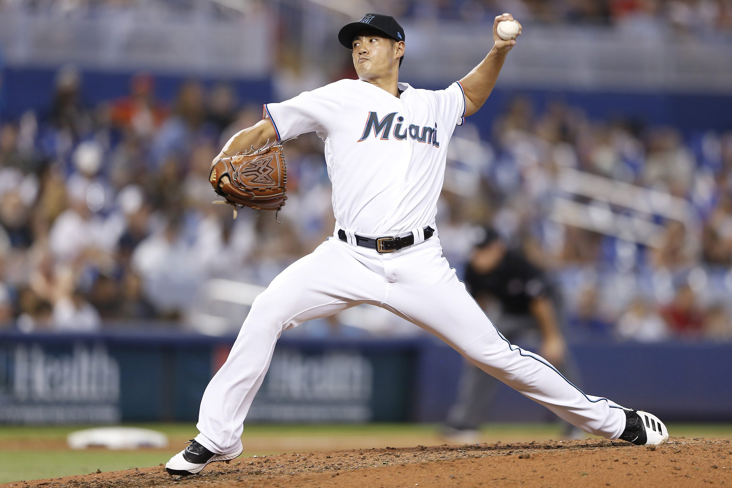 Wei-Yin Chen pitching for the Marlins in 2019. (Photo by Michael Reaves/Getty Images)