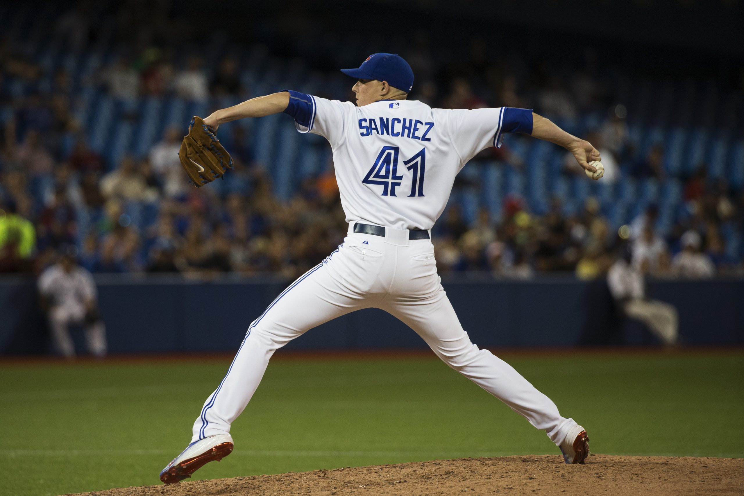 Aaron Sanchez pitches. (Melissa Renwick/Toronto Star via Getty Images)