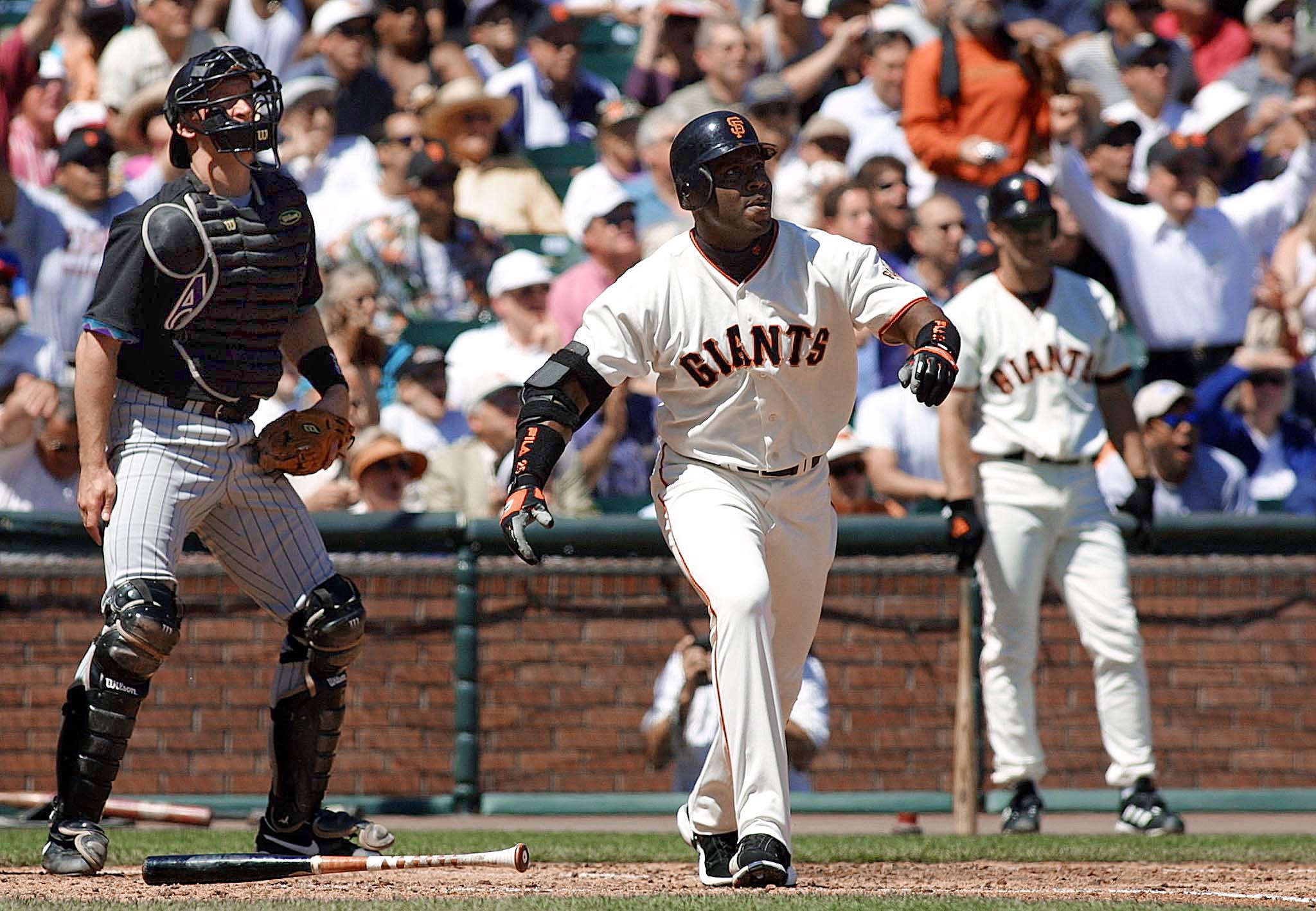 Photo Credit: San Francisco Giants slugger Barry Bonds watches home run. (Photo credit should read JOHN G. MABANGLO/AFP via Getty Images)