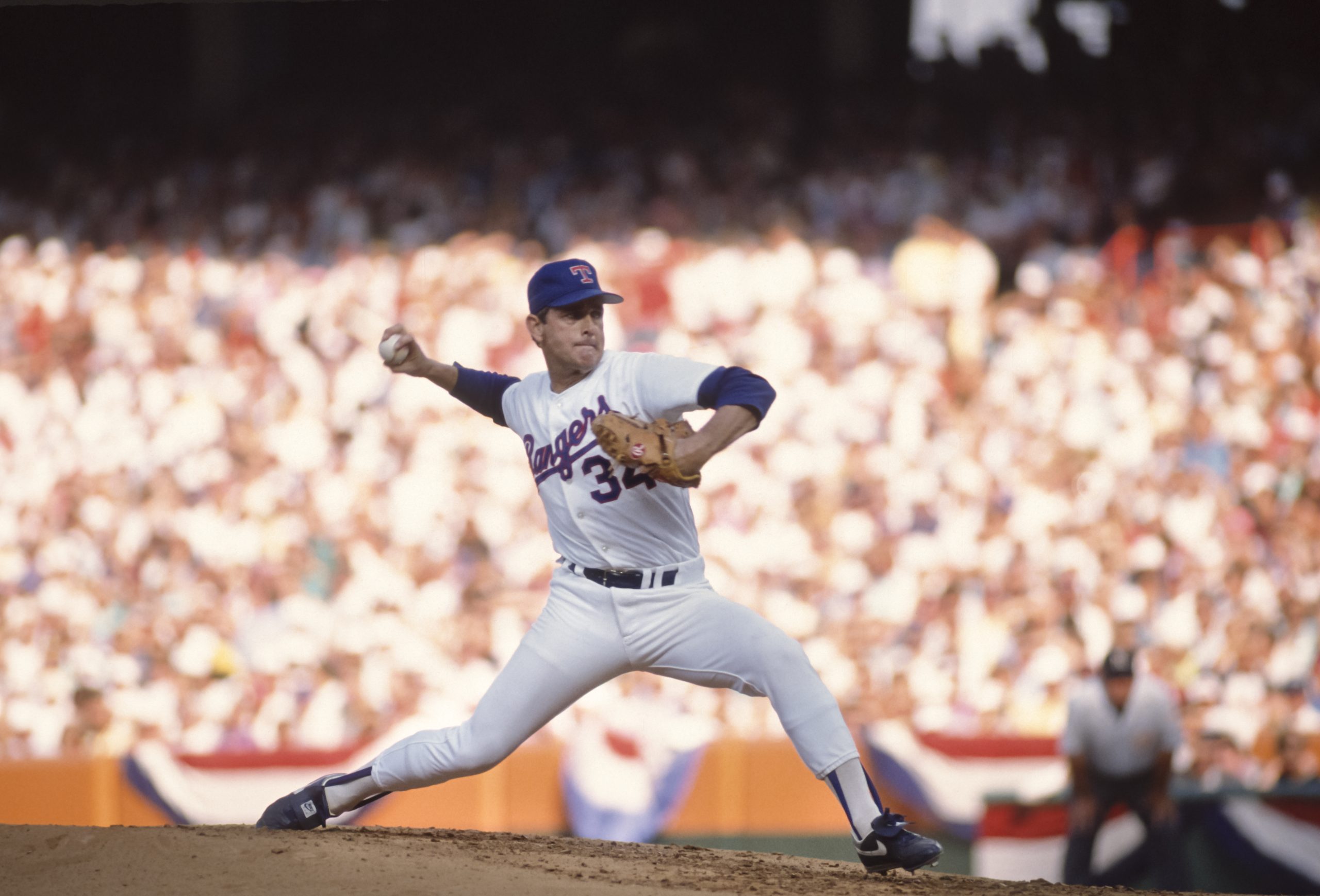 Photo Credit: Nolan Ryan #34 of the Texas Rangers pitches in the Major League Baseball All-Star Game on July 11, 1989 at Anaheim Stadium in Anaheim, California. (Photo by David Madison/Getty Images)