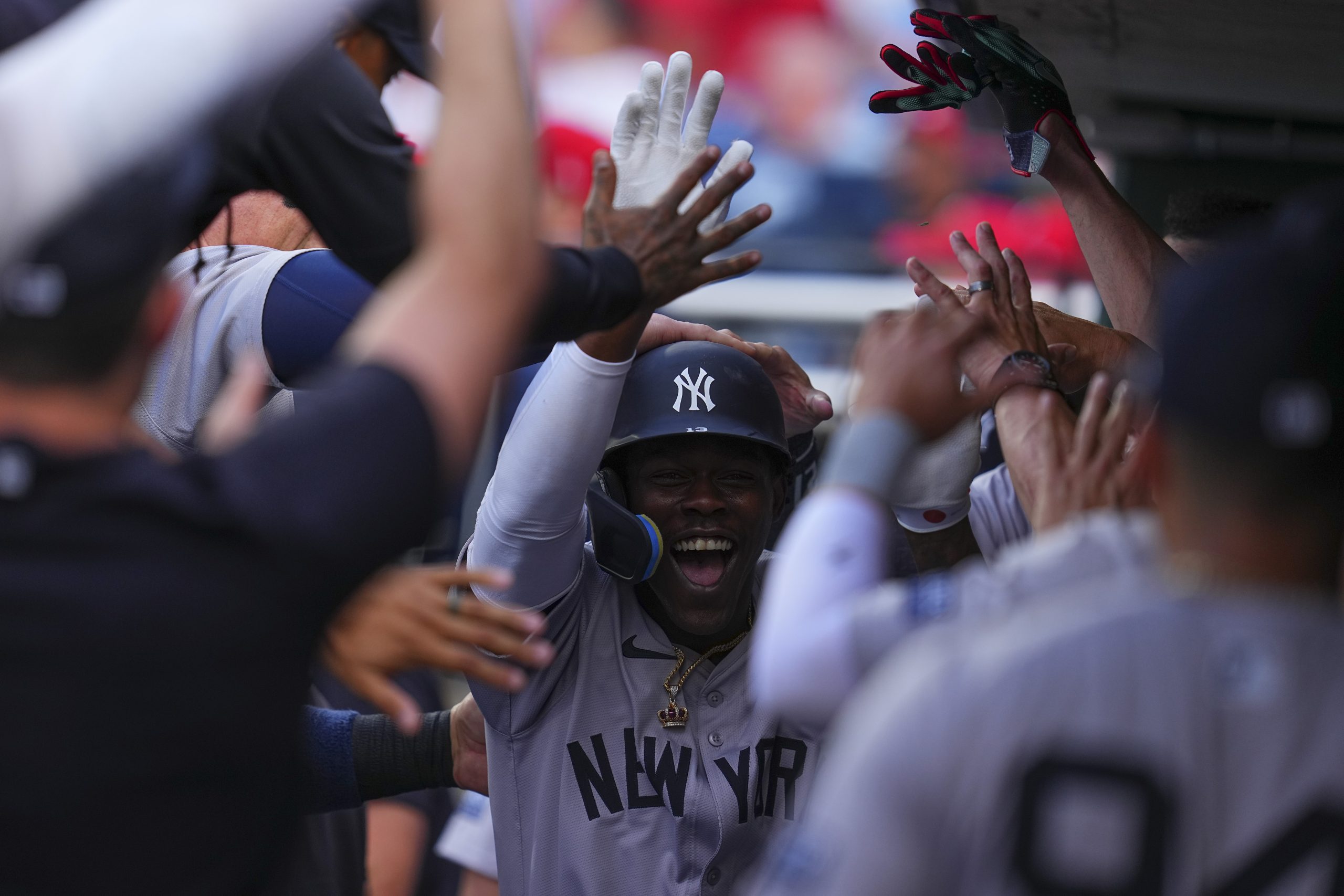 Photo Credit: Jazz Chisholm Jr. #13 of the New York Yankees celebrates a solo home run in the top of the second inning against the Philadelphia Phillies at Citizens Bank Park on July 29, 2024 in Philadelphia, Pennsylvania. (Photo by Mitchell Leff/Getty Images)