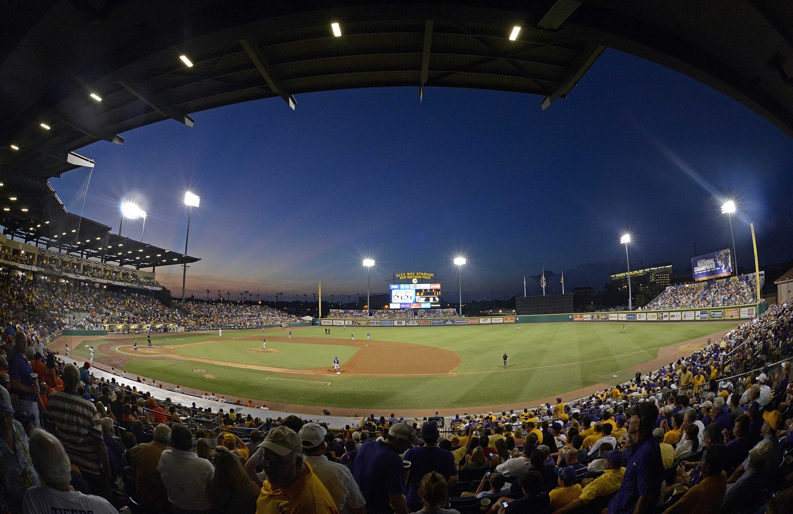 PHOTO: Fans at Alex Box Stadium watch during the third inning of an NCAA college baseball tournament regional game between LSU and Sam Houston State, Saturday, June 1, 2013, in Baton Rouge, La. (AP Photo/Bill Feig)