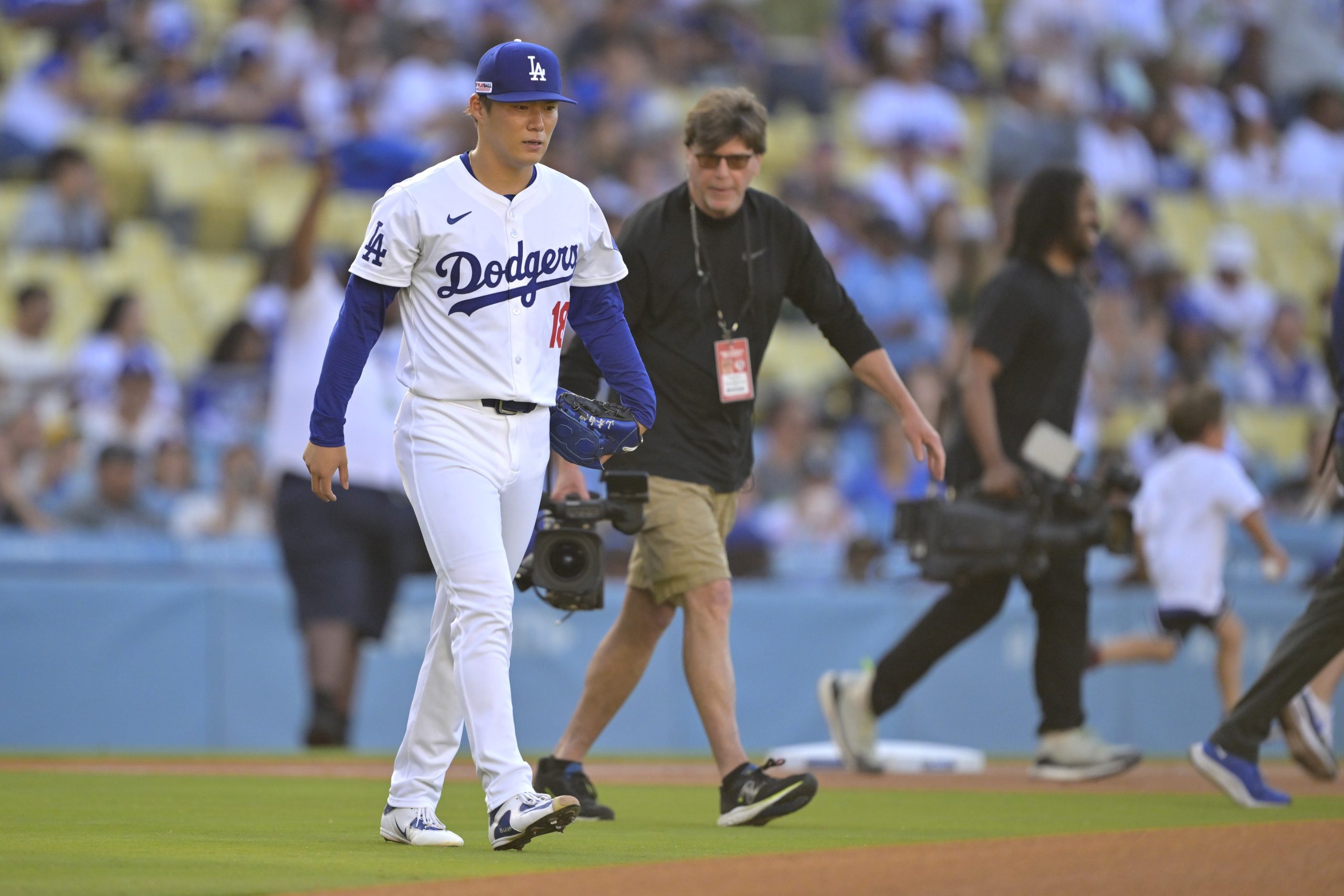 Photo Credit: Yoshinobu Yamamoto #18 of the Los Angeles Dodgers walks to the mound for the first inning against the Kansas City Royals at Dodger Stadium on June 15, 2024 in Los Angeles, California. (Photo by Jayne Kamin-Oncea/Getty Images)