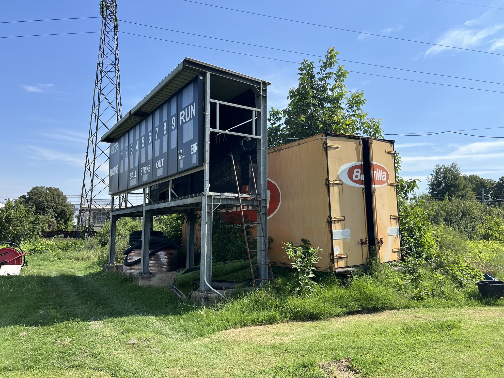 Strolling around just beyond the outfield walls at the Junior Parma complex, I noticed a rusty Barilla pasta box truck stuffed beyond the scoreboard. I thought this was the most Italian thing you can see on a baseball field. It’s perfect, really. It sits there among weeds with the hot summer sun beating down on its faded yellow paint. It’s a relic of a different time, just like the rest of these facilities and complexes across Italy.