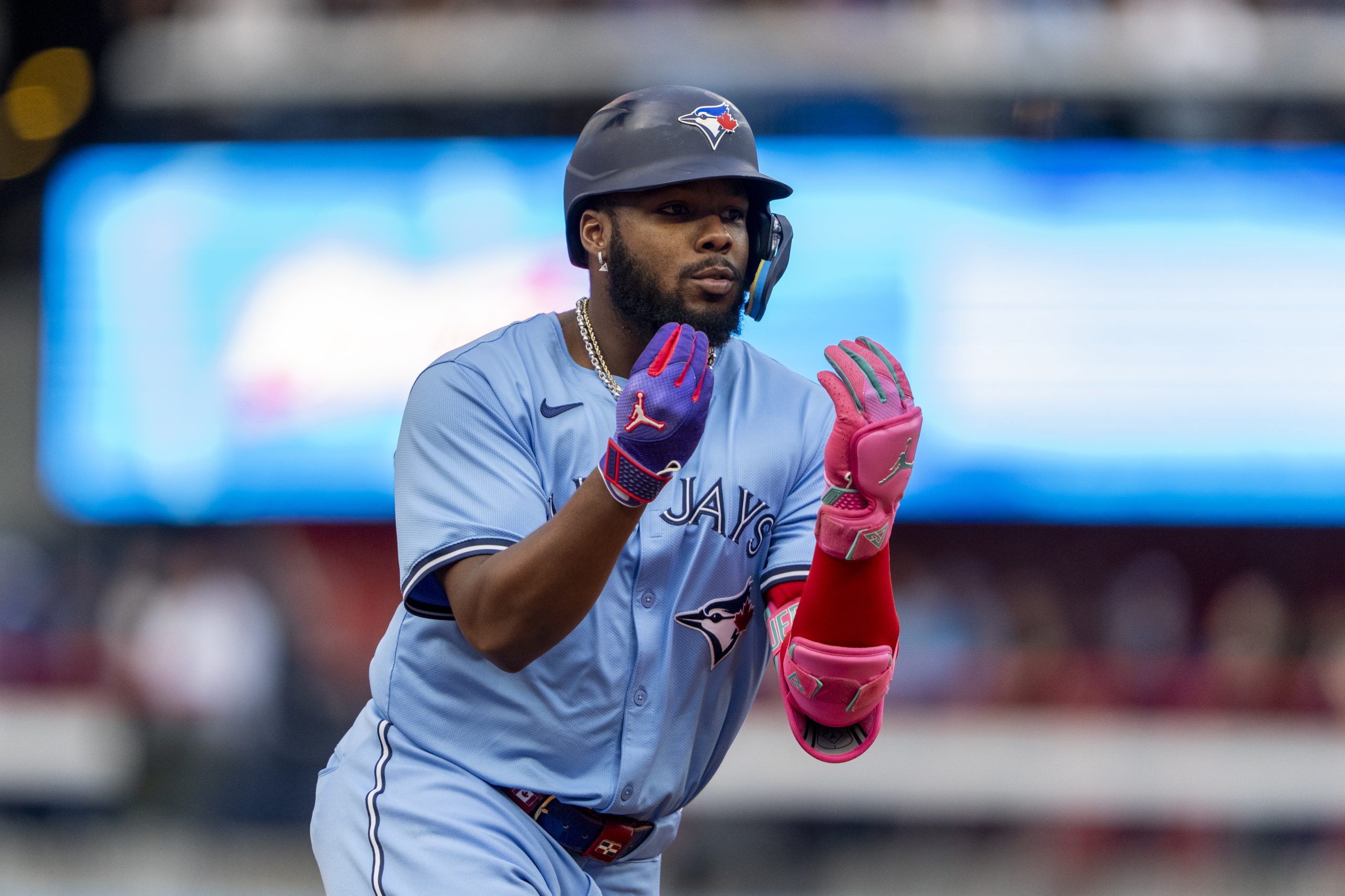 Photo Credit: Vladimir Guerrero Jr. #27 of the Toronto Blue Jays celebrates after hitting a home run against the Cincinnati Reds during the first inning in their MLB game at Rogers Centre on August 19, 2024 in Toronto, Canada. (Photo by Kevin Sousa/Getty Images)