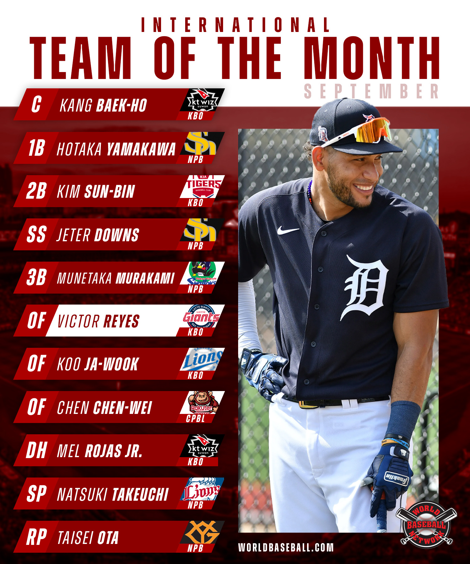 September draws to a close, and most leagues are gearing up for postseason play and finishing out the last few games of their respective regular seasons. World Baseball Network compiled a team of top players from leagues outside the United States who stood out in September. Here’s who dominated this month: