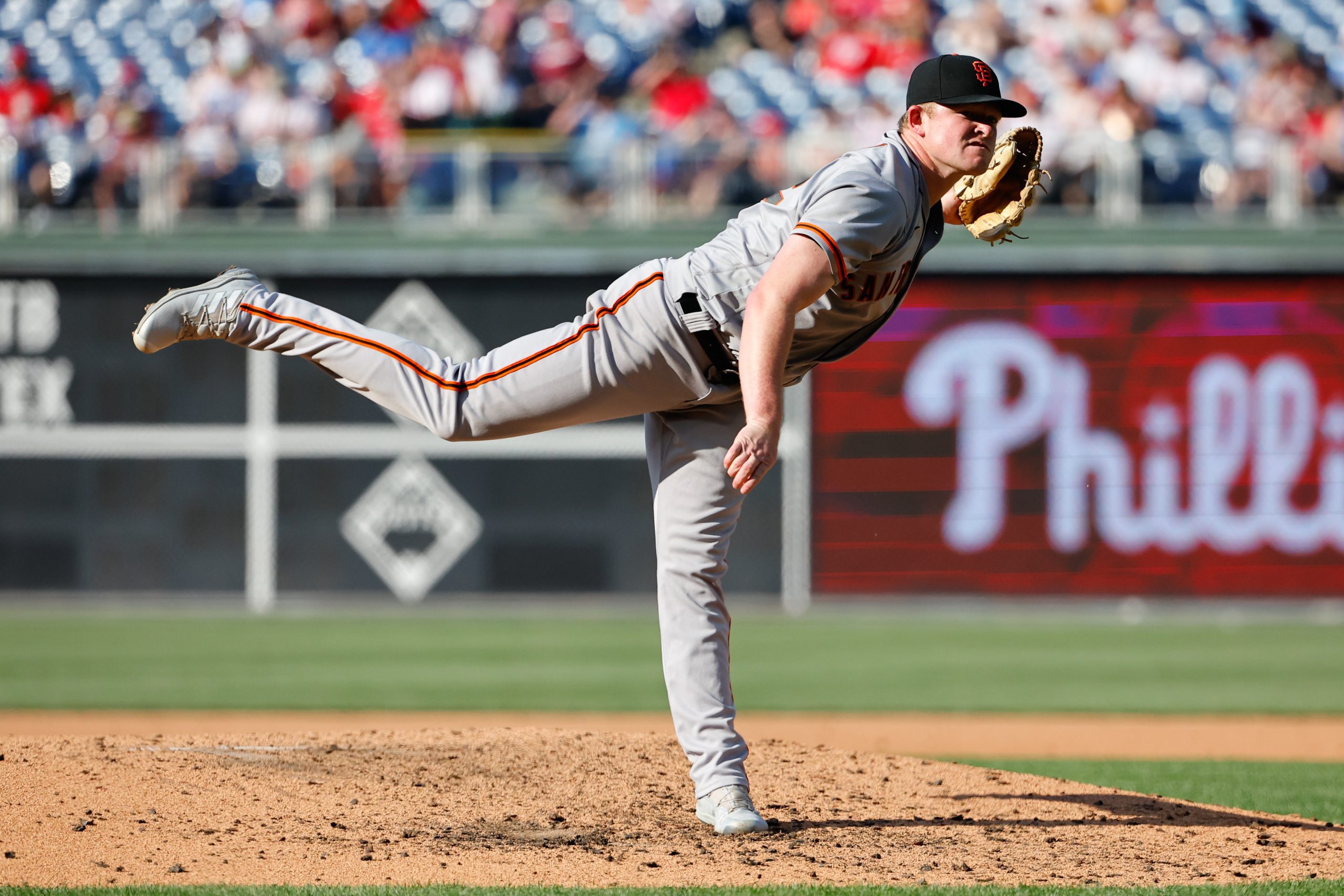 Logan Webb pitches in Philadelphia. (Photo by Rich Graessle/Icon Sportswire via Getty Images)