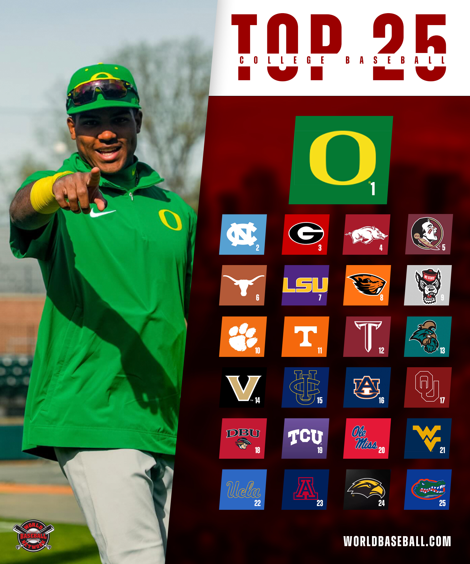 Here are the college baseball top 25 rankings from World Baseball Network as of May 5.
