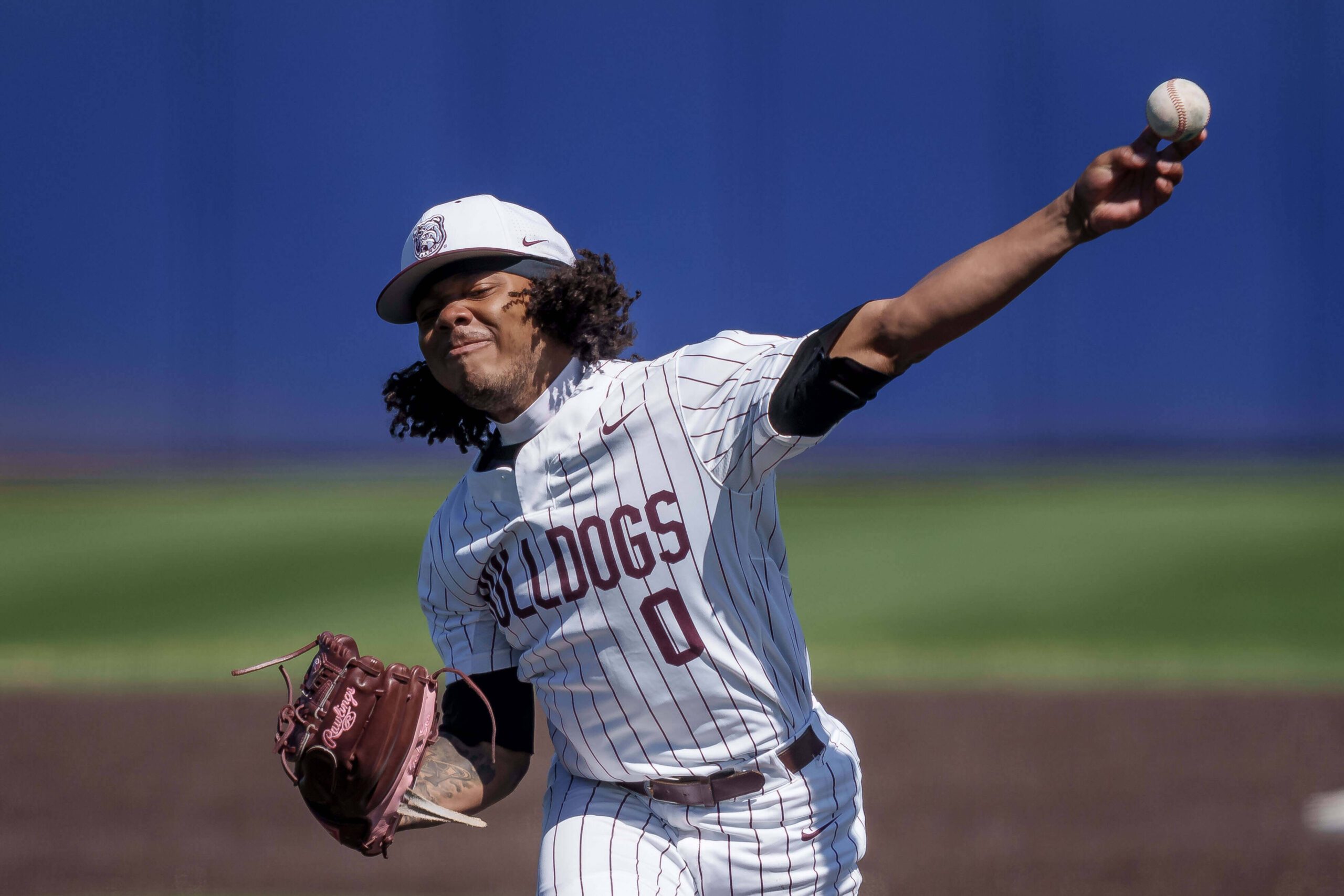PHOTO: Alabama A&M pitcher Rynzo Crutcher (0) throws during an NCAA baseball game against Northern Kentucky on Sunday, Feb. 22, 2026, in New Orleans. (AP Photo/Matthew Hinton)